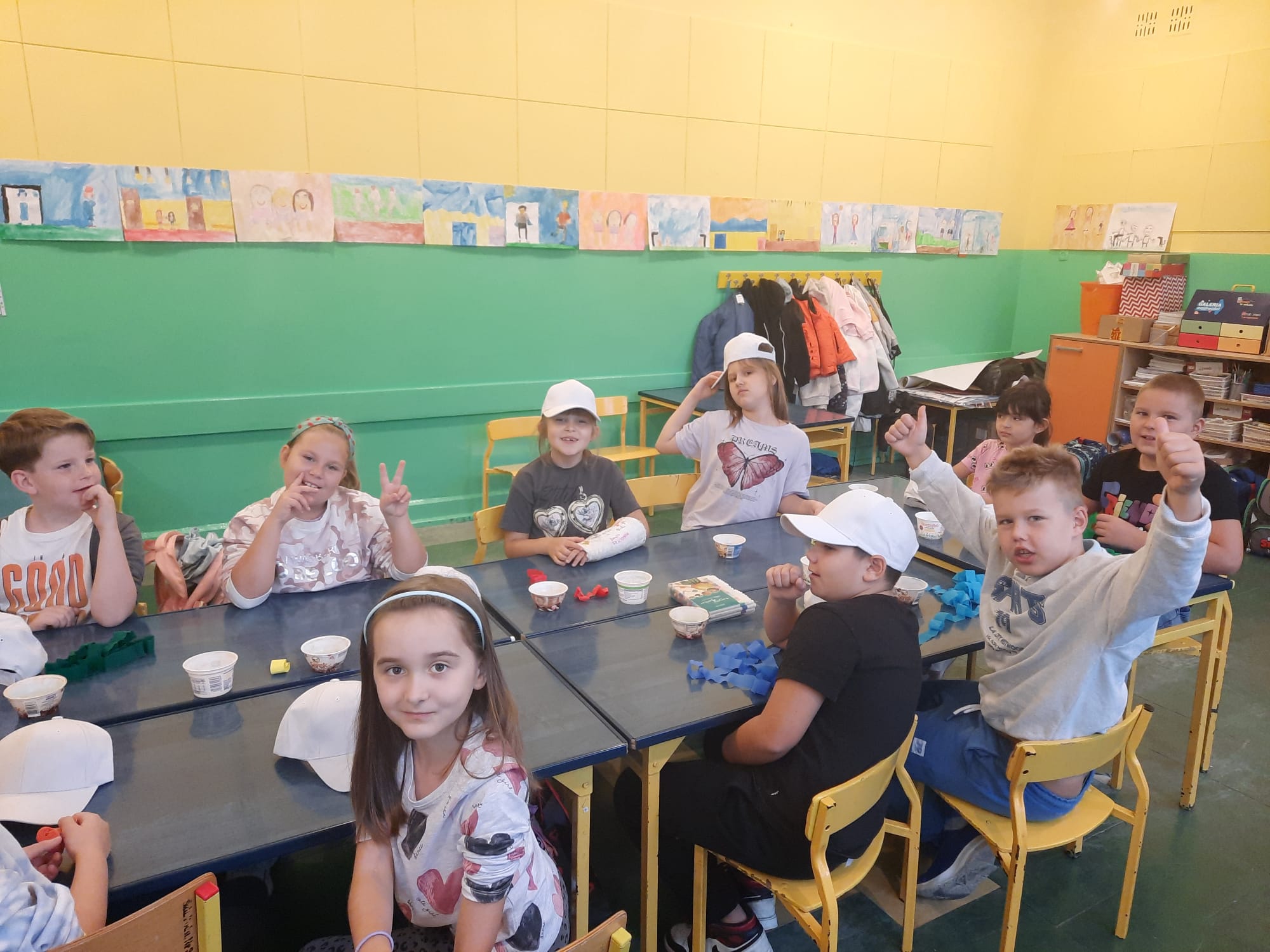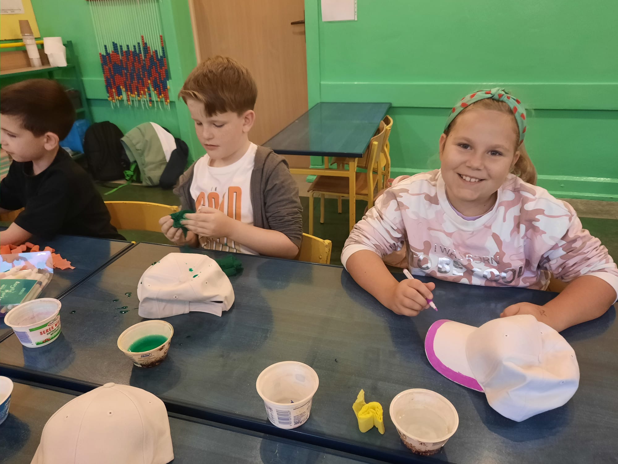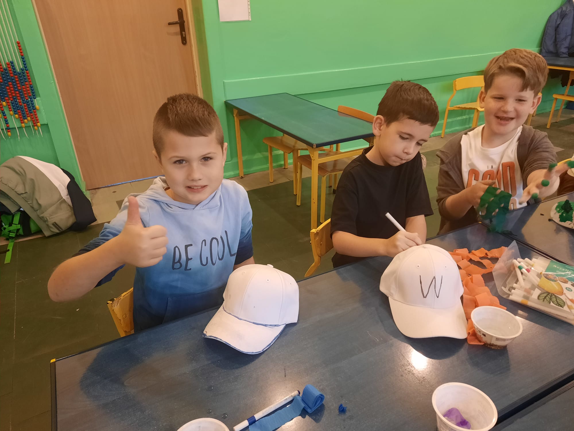 Uczniowie klasy 2c w Dniu Chłopaka uczestniczyli w warsztatach kolorowania czapek. Zajęciom towarzyszyła atmosfera integracji. Dzieci cieszyły się, że mogą samodzielnie pomalować swoje czapki.