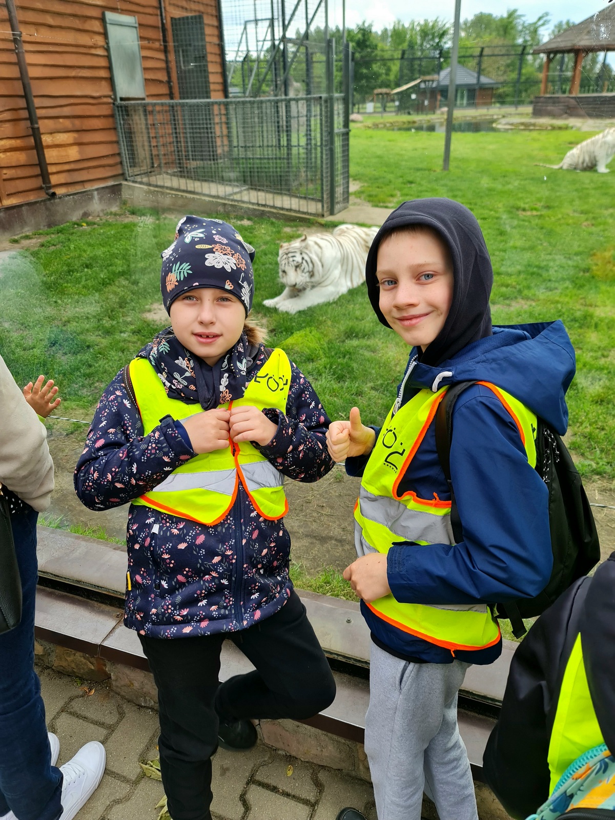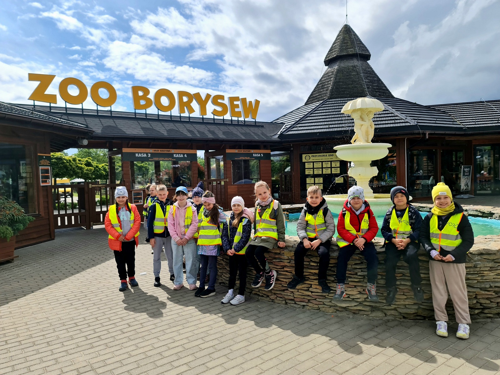 Wyczekujące kolejnych wrażeń dzieci udały się do Zoo Safari w Borysewie, gdzie czekała na nich pani przewodnik. Podczas spaceru uczniowie poznawali zwierzęta z różnych kontynentów, poszerzając swoją wiedzę przyrodniczą. Największe emocje wzbudziły białe lwy i tygrysy oraz niezwykle towarzyska, 25-letnia foka o imieniu Dawid, która zaprezentowała kilka imponujących sztuczek. Na zakończenie dnia dzieci zjadły obiad i miały chwilę na zakup pamiątek.