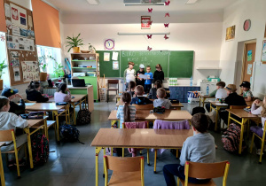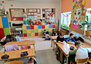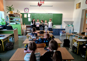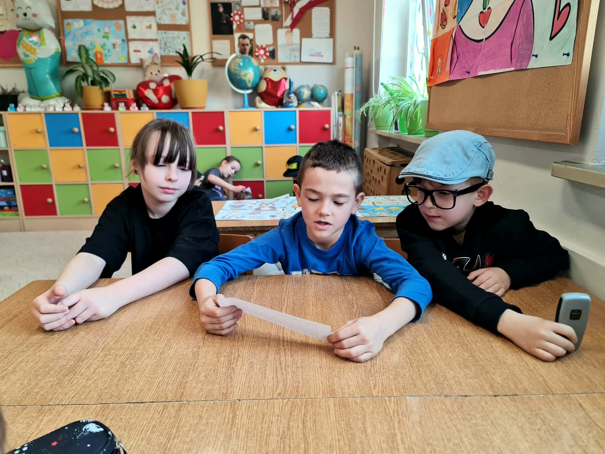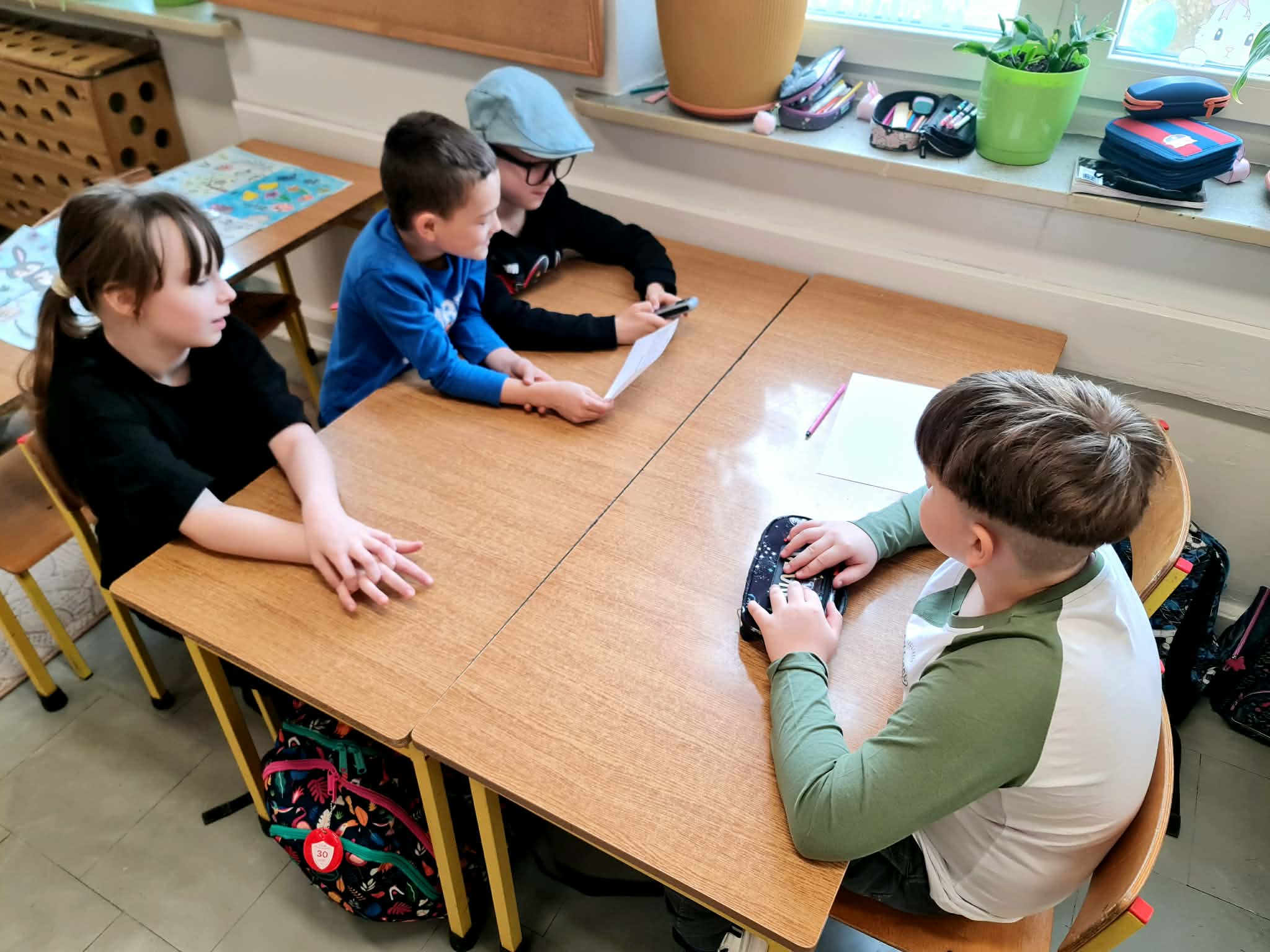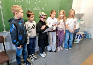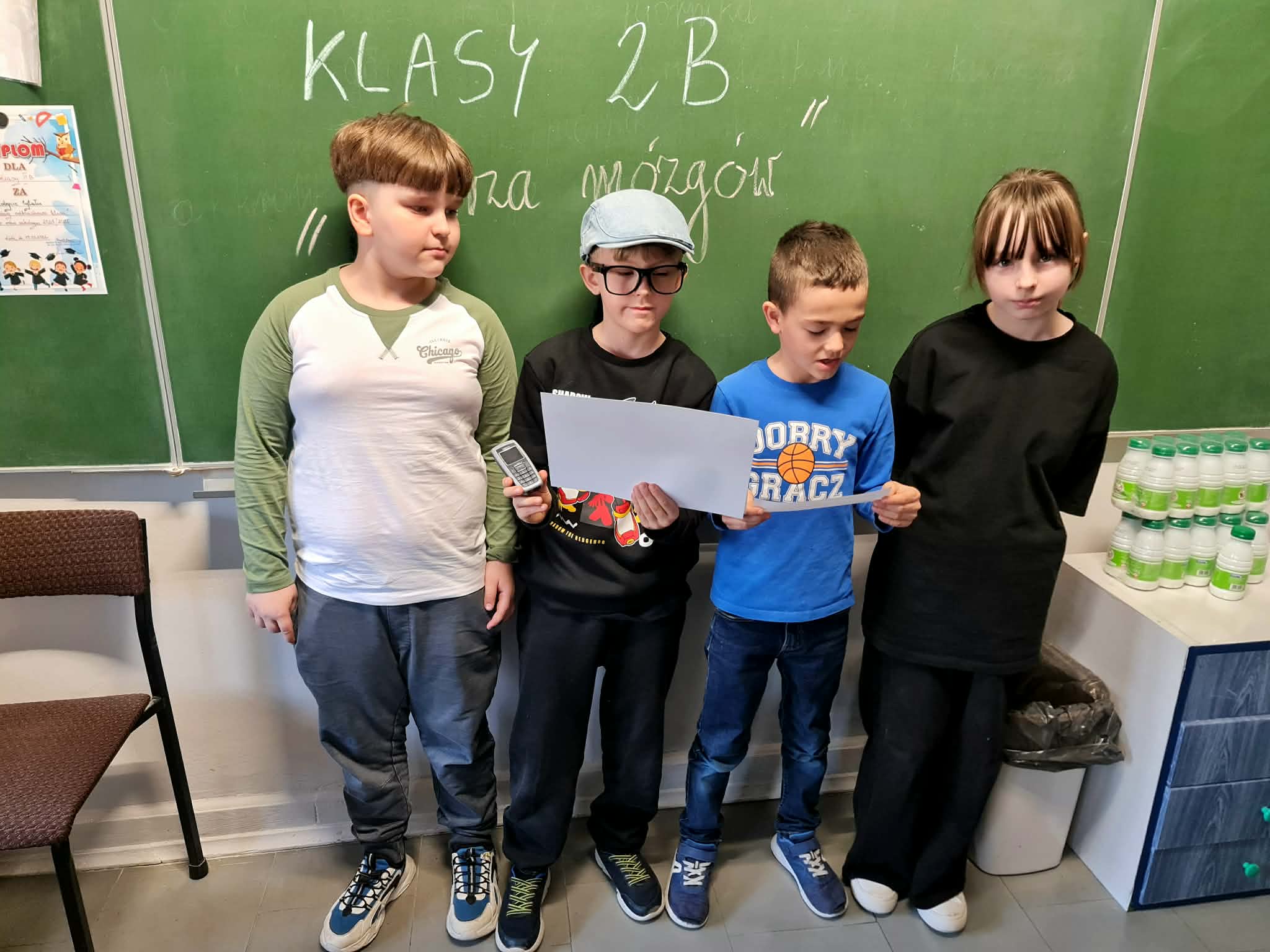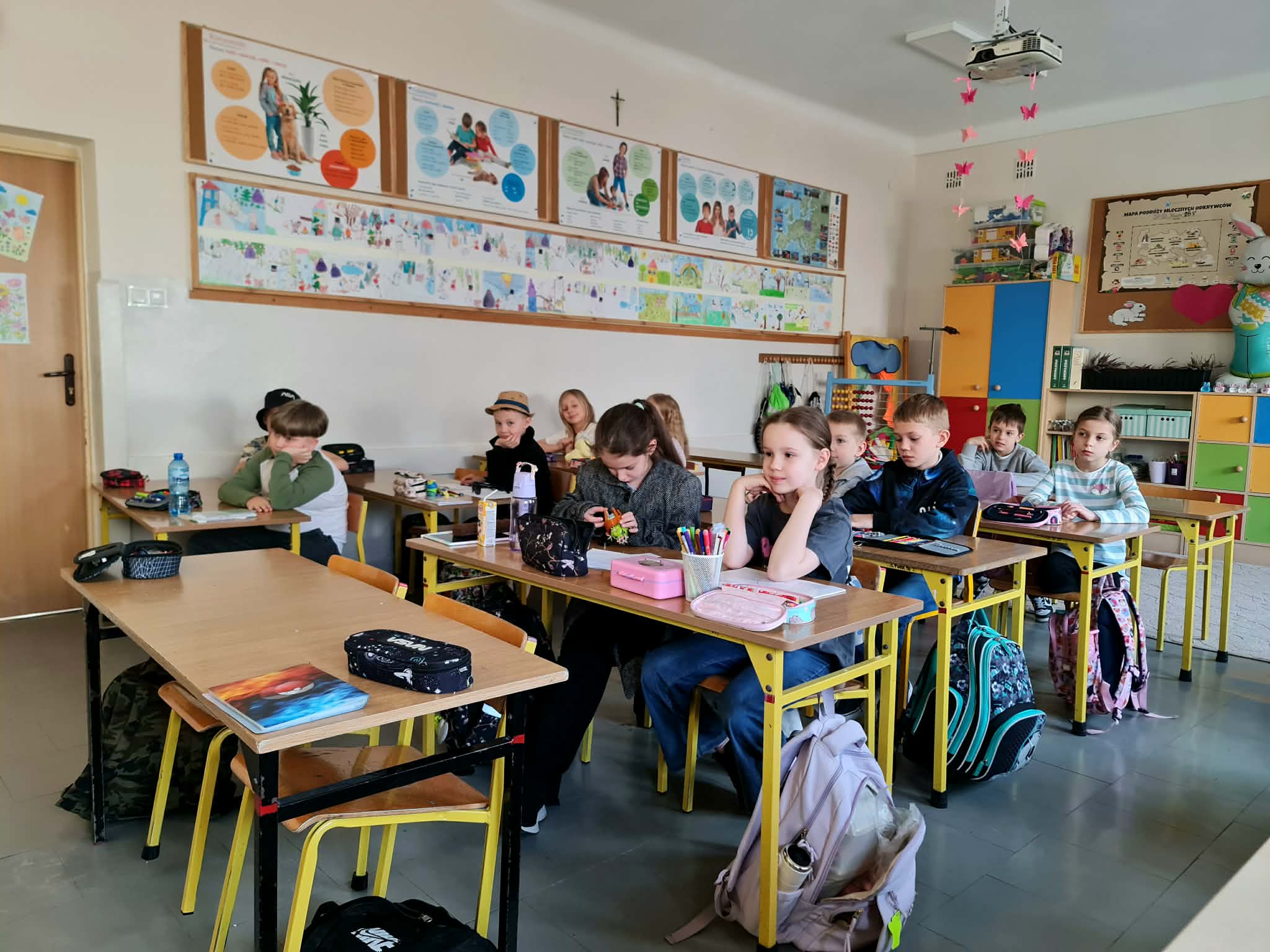 Pod koniec marca, w nawiązaniu do omawianej lektury pt.: „Detektyw Pozytywka”, uczniowie klasy 2b wzięli udział w nietypowych zajęciach. Na początku cała klasa założyła swoją agencję detektywistyczną i wymyśliła dla niej nazwę. Niektórzy chętni uczniowie tak bardzo wczuli się w rolę detektywów, że z okazji tych planowanych tematycznych zajęć przyszli do szkoły w specjalnych przebraniach i przynieśli ze sobą różne detektywistyczne akcesoria. Następnie uczniowie zostali podzieleni na cztery zespoły, których zadaniem było rozwikłanie zagadkowych historii otrzymanych od tajemniczych klientów. Każda grupa z dużym zaangażowaniem analizowała wskazówki i szukała właściwych rozwiązań. Na zakończenie zespoły zaprezentowały swoje pomysły na rozwiązanie powierzonych im spraw. Dzieci świetnie poradziły sobie z zadaniami, wykazując się spostrzegawczością, logicznym myśleniem, kreatywnością oraz umiejętnością współpracy.