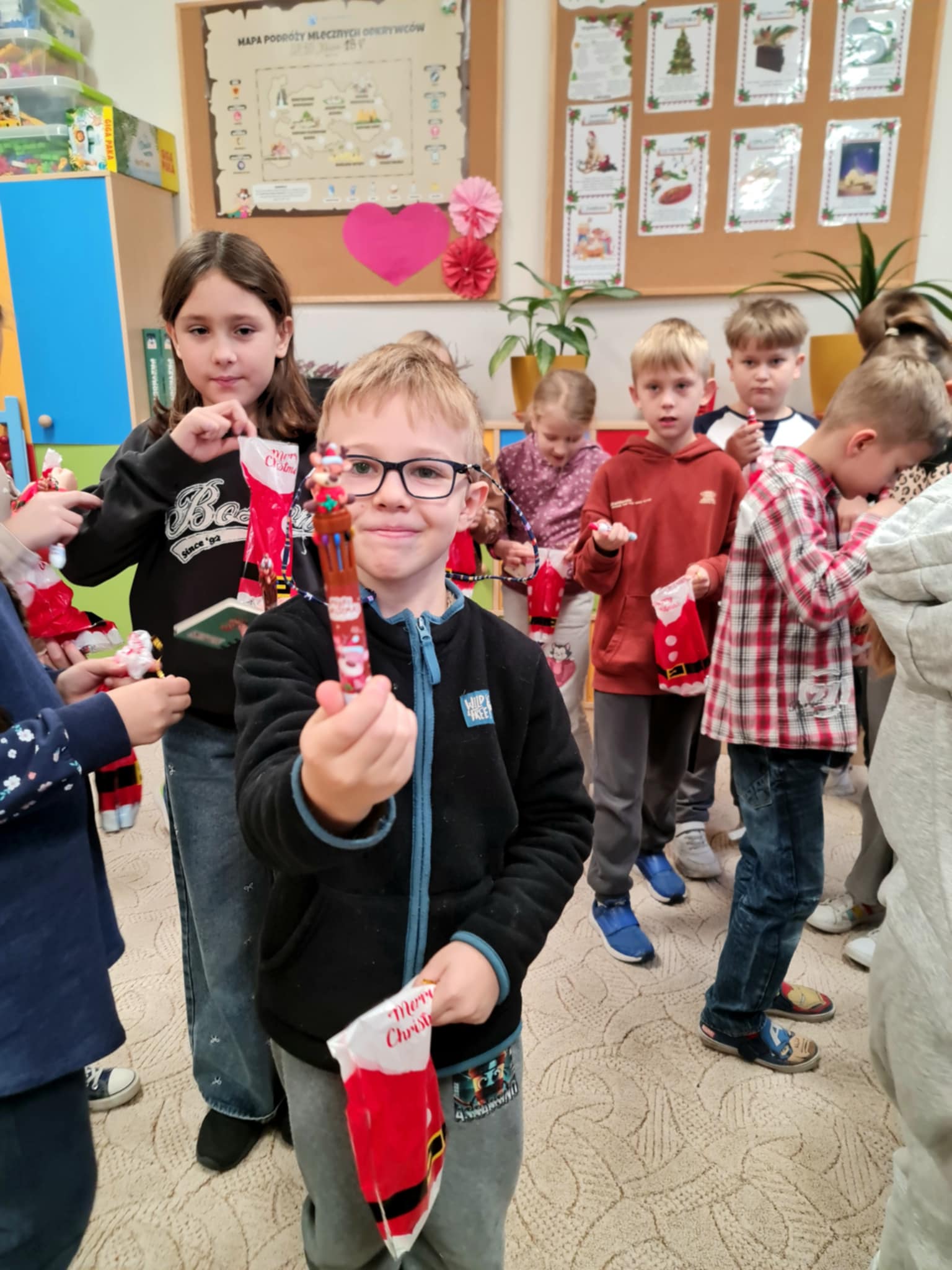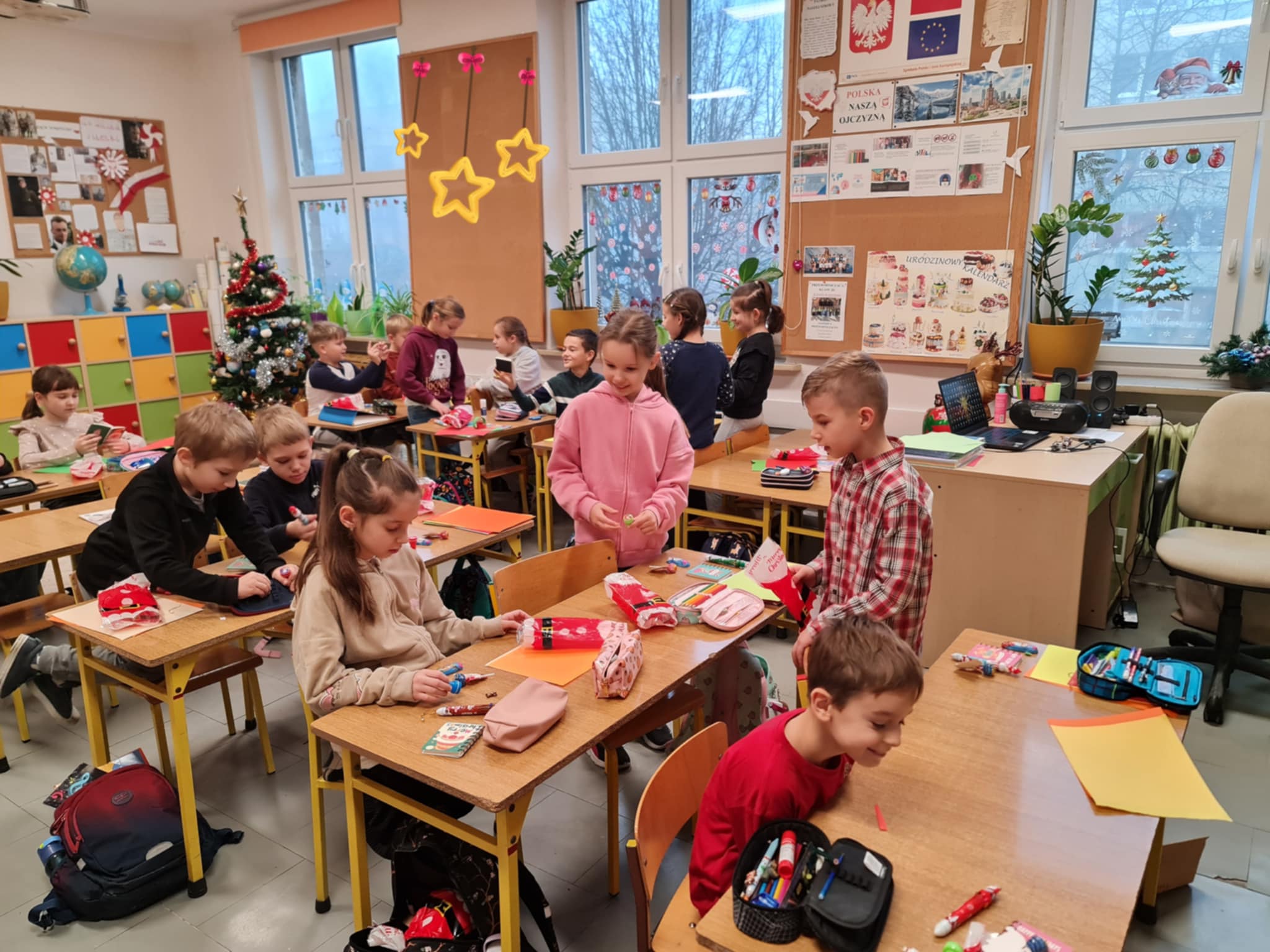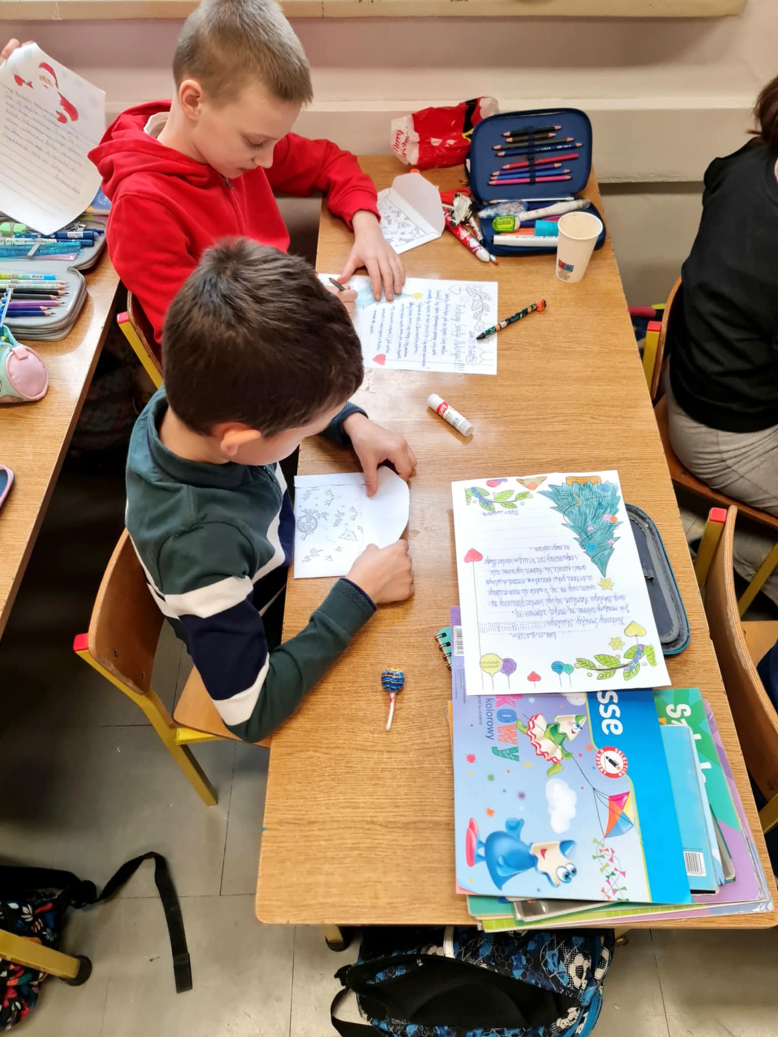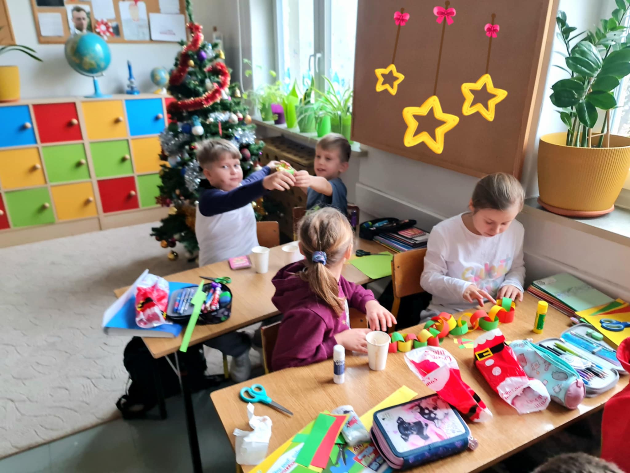 Po odpakowaniu podarunków, dzieci zabrały się za pisanie listów do Świętego Mikołaja. Włożyły w to wiele serca. Następnie samodzielnie adresowały koperty, dzięki czemu mogły zyskać pewność, że trafią one w ręce adresata. Tego dnia, w klasie powstawały również kolorowe, papierowe łańcuchy, które wprowadziły jeszcze więcej świątecznych barw i radości.