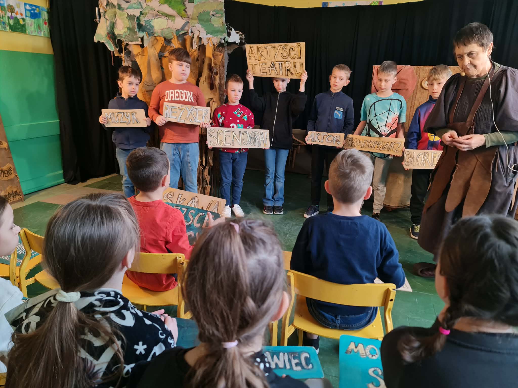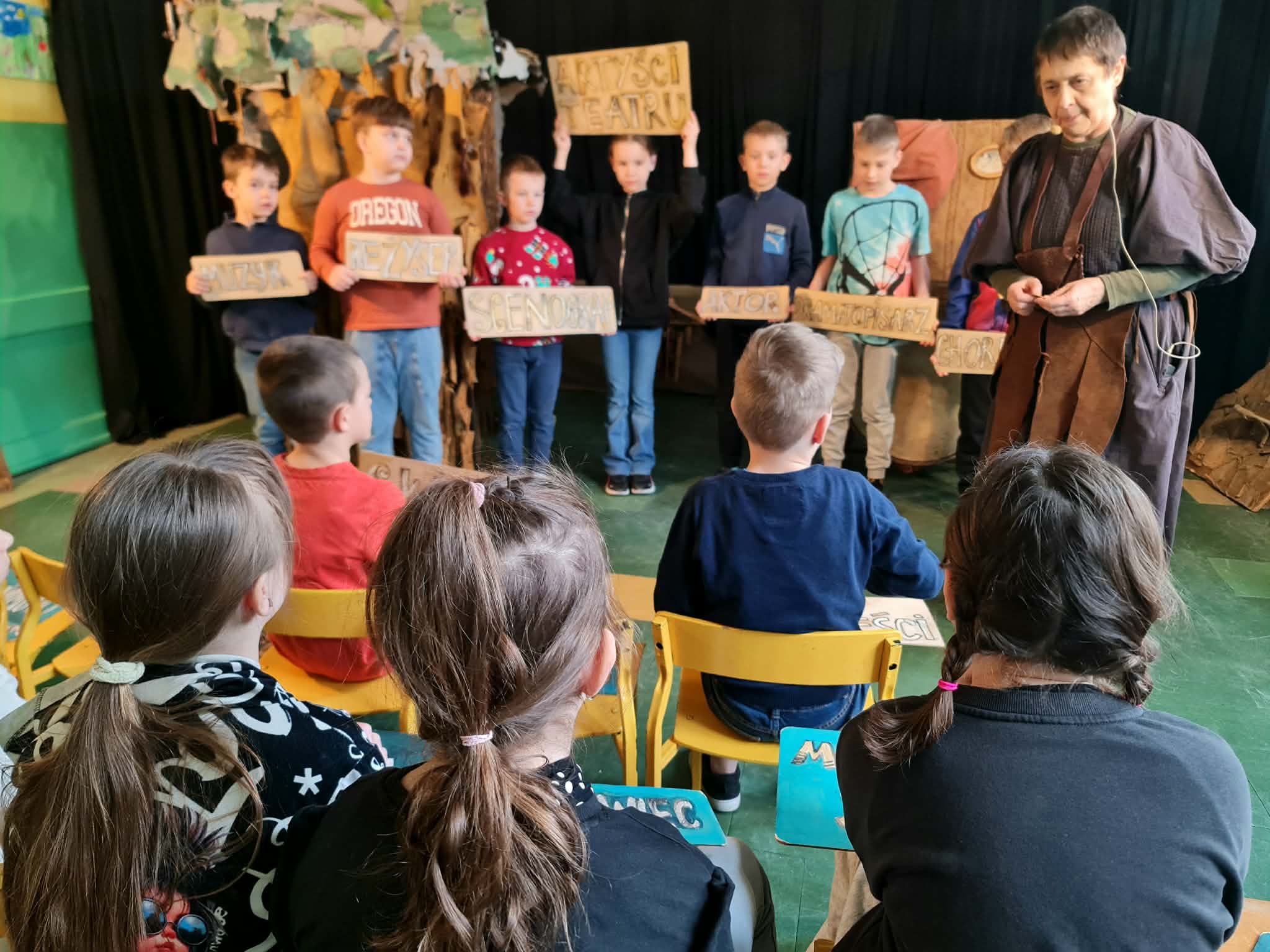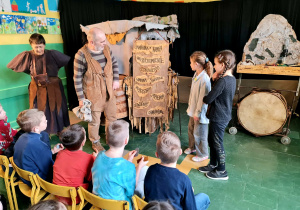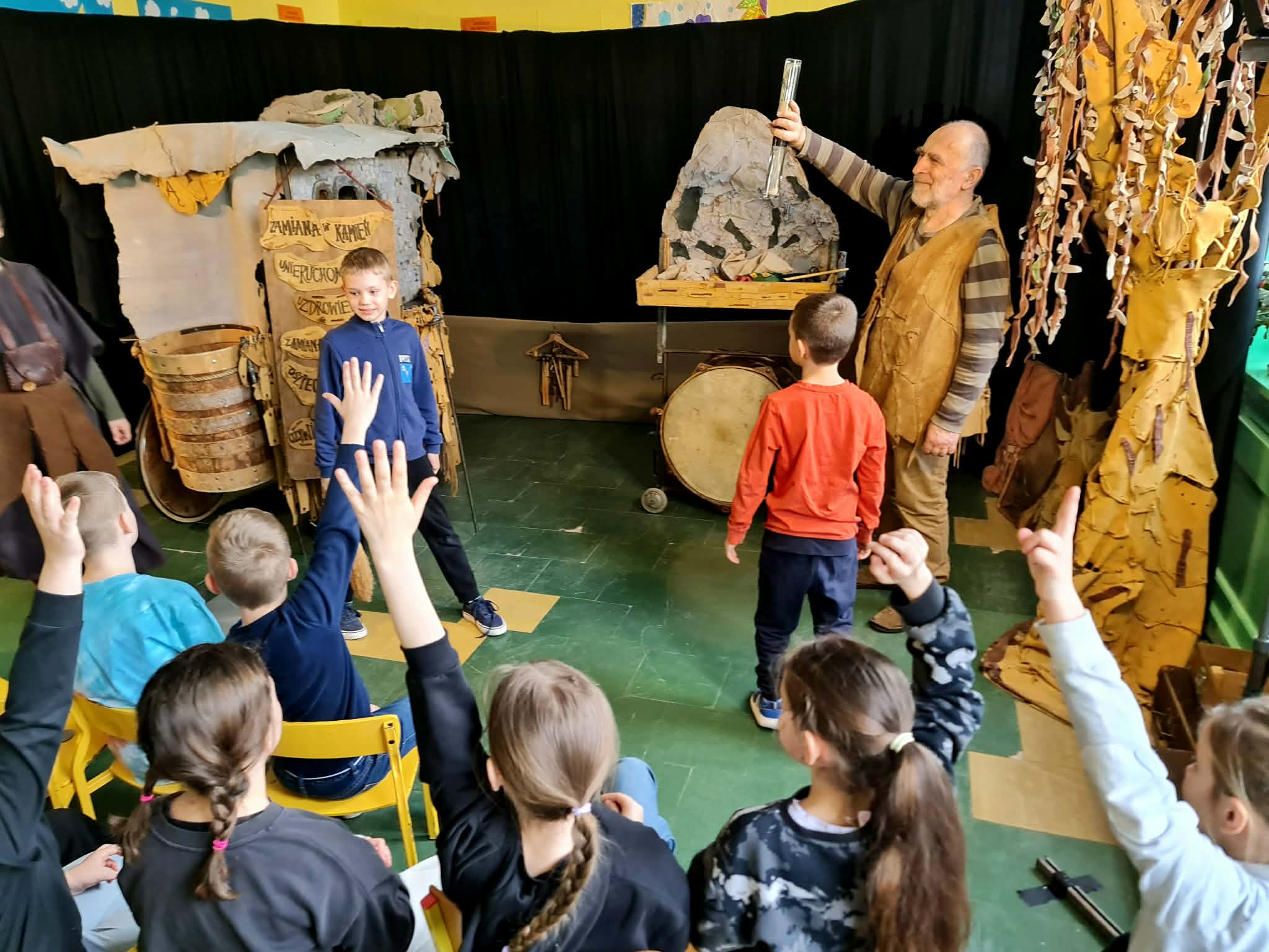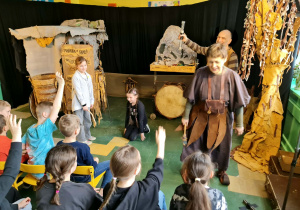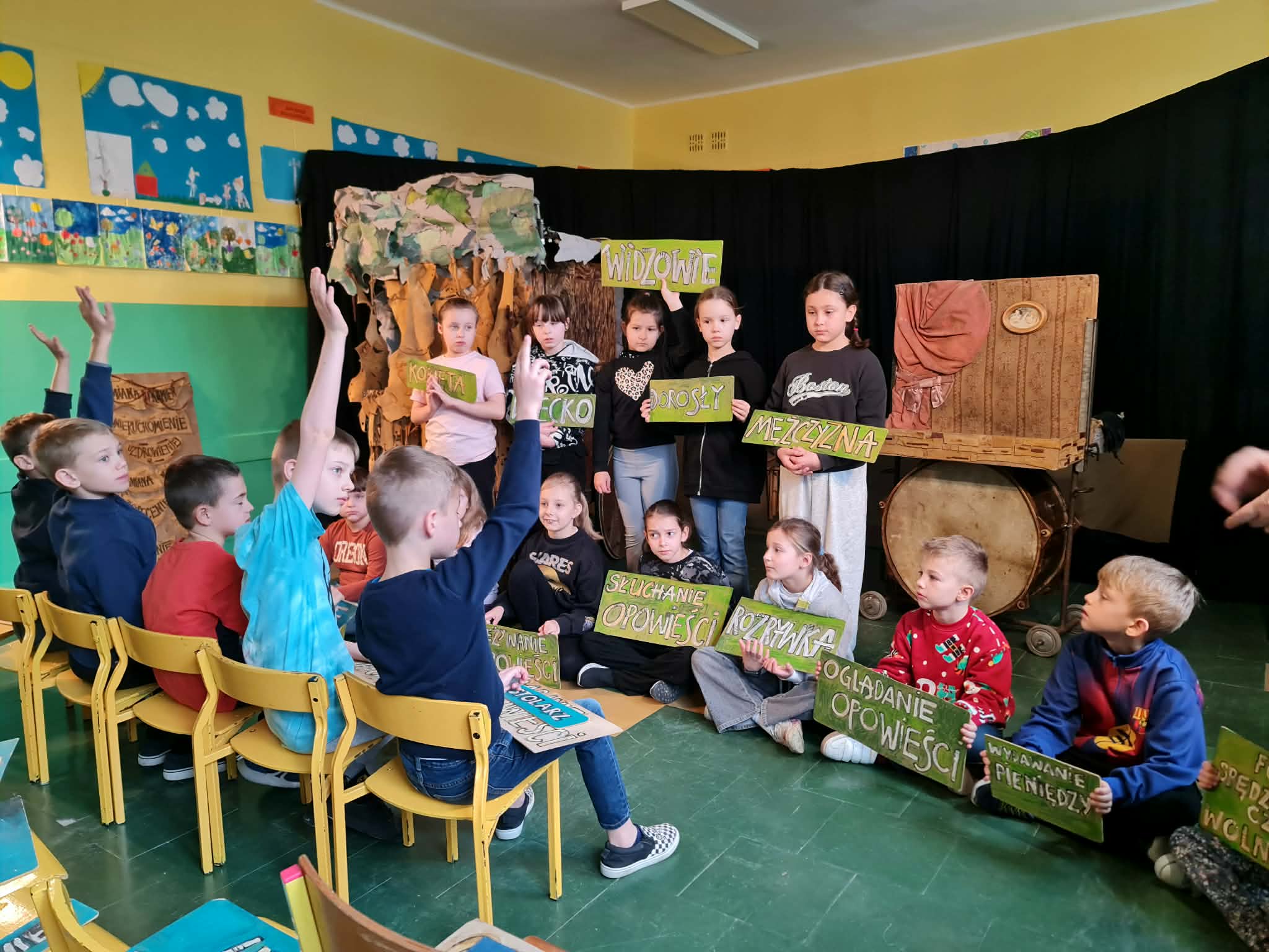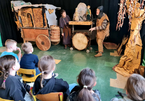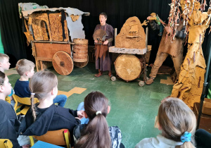 Uczniowie klas 2a, 2b i 2c wzięli udział w ciekawych warsztatach teatralnych pt.: Po co teatr?", które odbyły się na terenie naszej szkoły. Na początku zajęć dzieci dowiedziały się, jak wyglądał handel w dawnych czasach – poznały dawne środki płatnicze oraz dowiedziały się, na czym polegała wymiana towarów, zanim zaczęto powszechnie używać pieniędzy. Podczas warsztatów uczniowie poznali również, jak ważną rolę od wieków odgrywa teatr w życiu ludzi – zarówno widzów, jak i osób pracujących przy tworzeniu spektakli. Dzieci miały okazję dowiedzieć się, czym jest baśń jako gatunek literacki, jakie elementy powinna zawierać oraz dlaczego opowieści i narracja są tak ważne w kulturze. Chętni uczniowie mogli spróbować nie tylko swoich sił w działaniach aktorskich, ale i uczyć się rzucać tajemnicze zaklęcia. W trakcie zajęć dzieci aktywnie uczestniczyły w różnych zadaniach i zabawach teatralnych, wykorzystując liczne rekwizyty. Ich zaangażowanie i zdobywane umiejętności były nagradzane specjalnymi talarami, które dodatkowo motywowały do działania i współpracy.