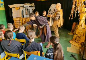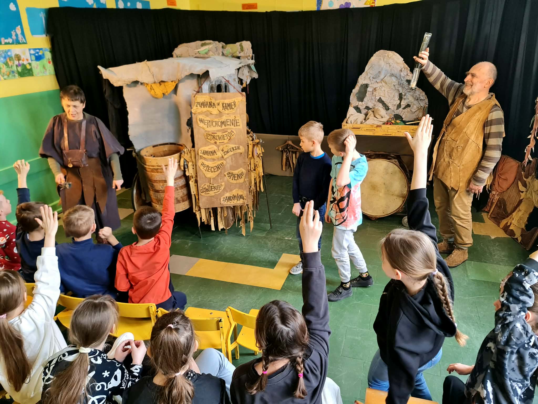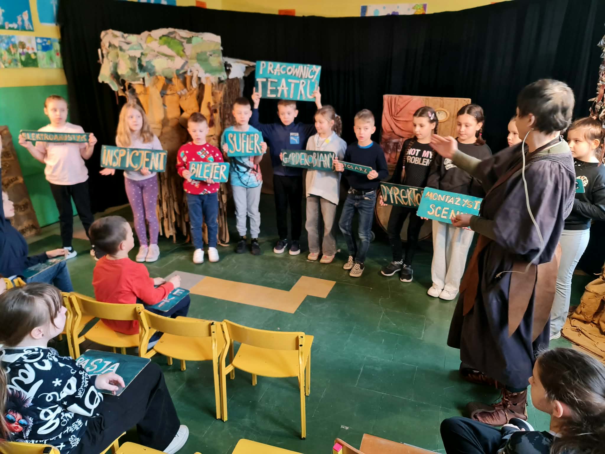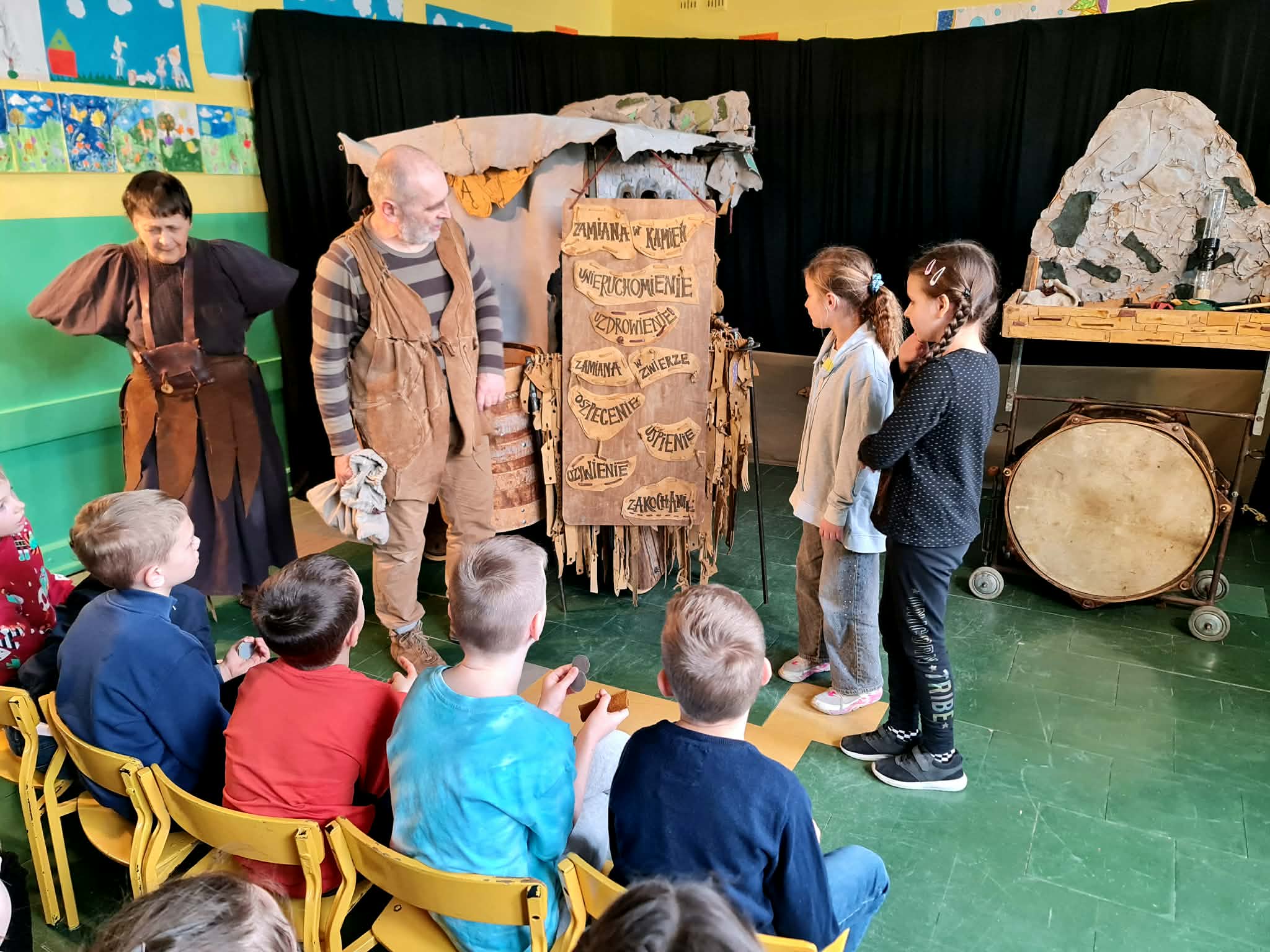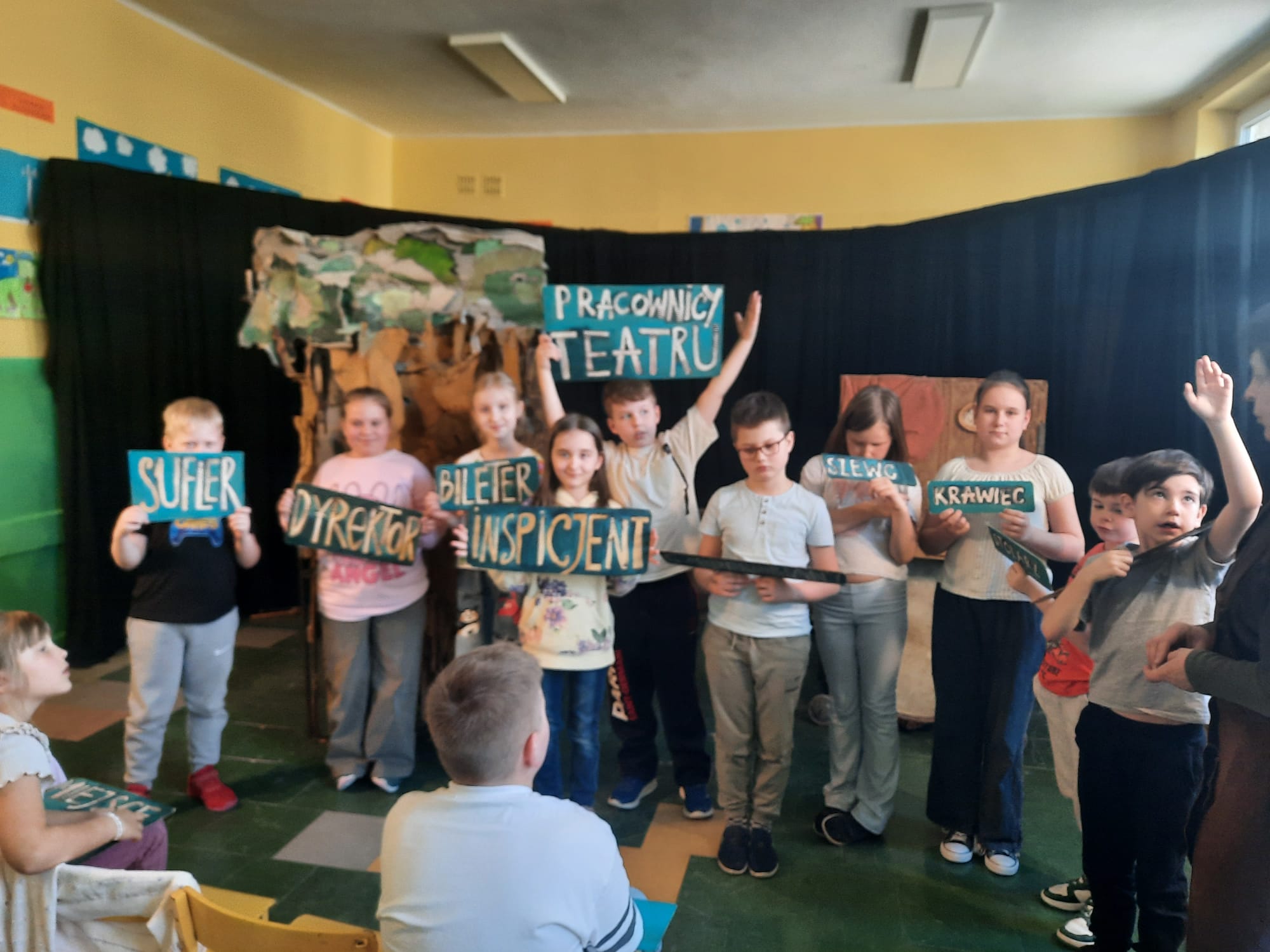 Uczniowie klas 2a, 2b i 2c wzięli udział w ciekawych warsztatach teatralnych pt.: Po co teatr?", które odbyły się na terenie naszej szkoły. Na początku zajęć dzieci dowiedziały się, jak wyglądał handel w dawnych czasach – poznały dawne środki płatnicze oraz dowiedziały się, na czym polegała wymiana towarów, zanim zaczęto powszechnie używać pieniędzy. Podczas warsztatów uczniowie poznali również, jak ważną rolę od wieków odgrywa teatr w życiu ludzi – zarówno widzów, jak i osób pracujących przy tworzeniu spektakli. Dzieci miały okazję dowiedzieć się, czym jest baśń jako gatunek literacki, jakie elementy powinna zawierać oraz dlaczego opowieści i narracja są tak ważne w kulturze. Chętni uczniowie mogli spróbować nie tylko swoich sił w działaniach aktorskich, ale i uczyć się rzucać tajemnicze zaklęcia. W trakcie zajęć dzieci aktywnie uczestniczyły w różnych zadaniach i zabawach teatralnych, wykorzystując liczne rekwizyty. Ich zaangażowanie i zdobywane umiejętności były nagradzane specjalnymi talarami, które dodatkowo motywowały do działania i współpracy.
