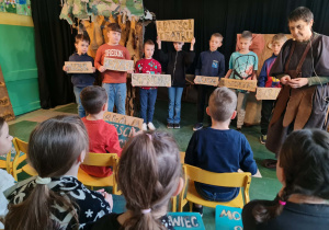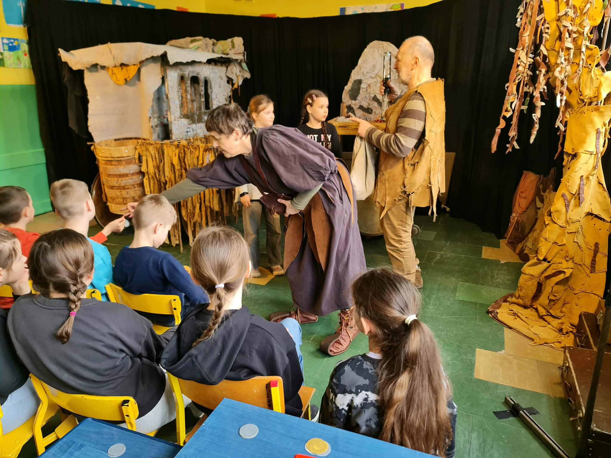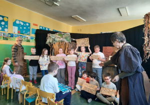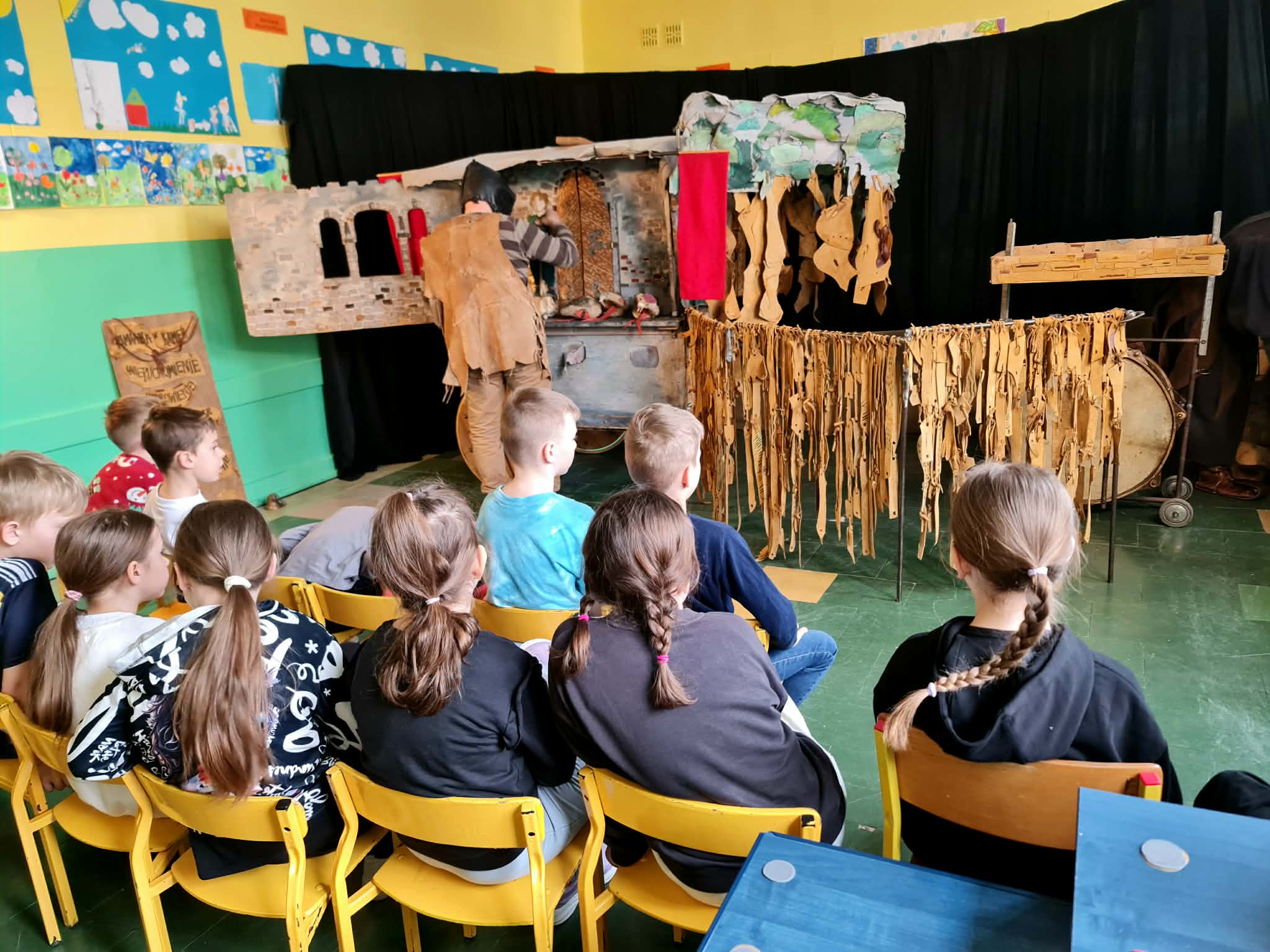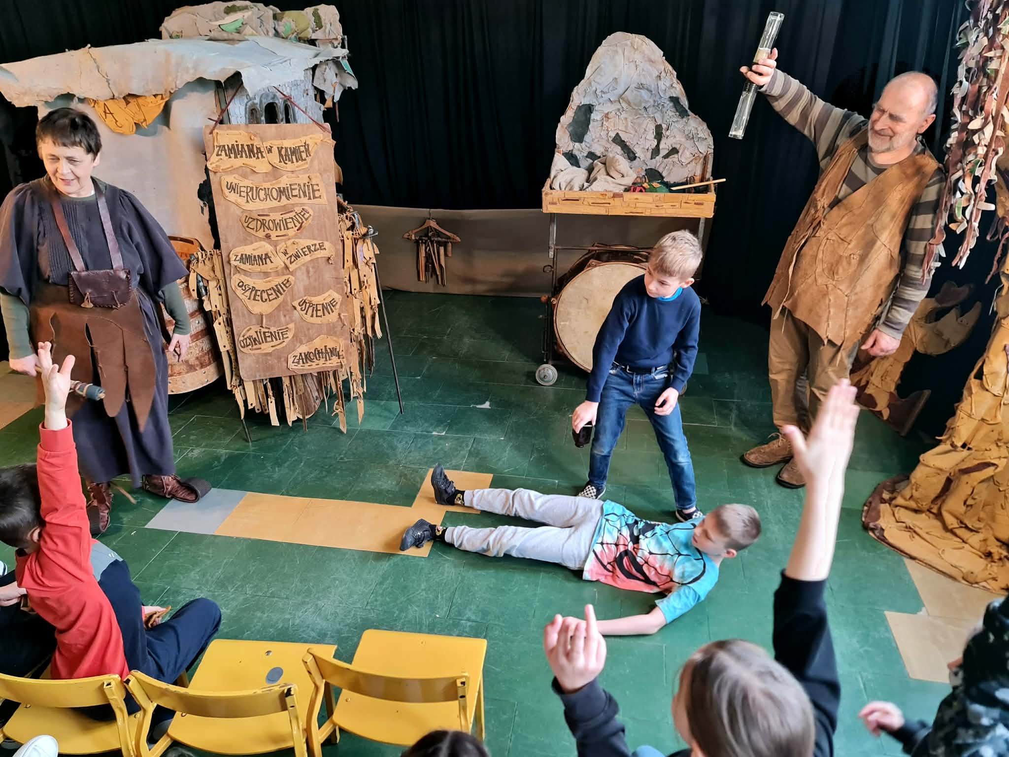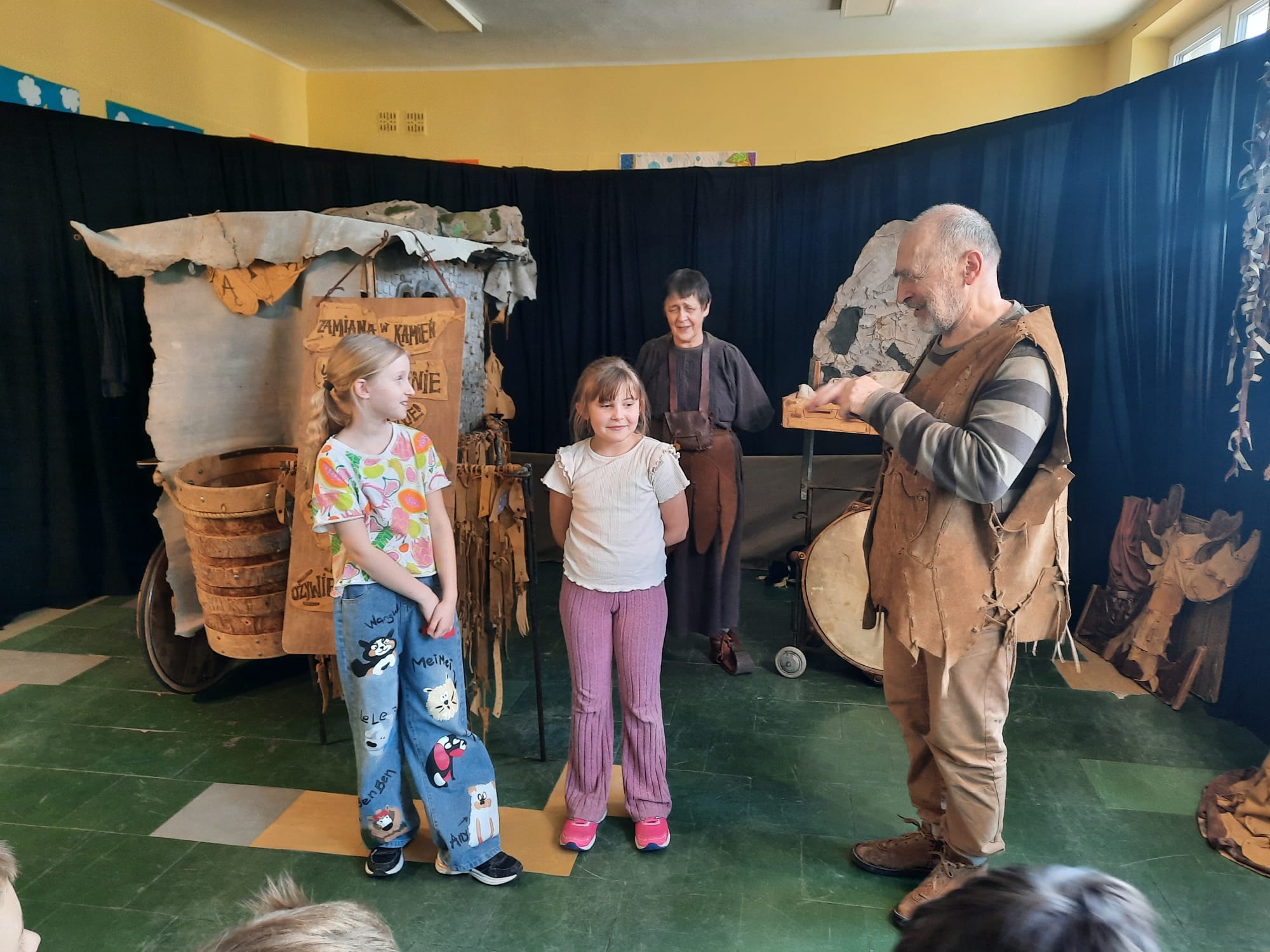 Uczniowie klas 2a, 2b i 2c wzięli udział w ciekawych warsztatach teatralnych pt.: Po co teatr?", które odbyły się na terenie naszej szkoły. Na początku zajęć dzieci dowiedziały się, jak wyglądał handel w dawnych czasach – poznały dawne środki płatnicze oraz dowiedziały się, na czym polegała wymiana towarów, zanim zaczęto powszechnie używać pieniędzy. Podczas warsztatów uczniowie poznali również, jak ważną rolę od wieków odgrywa teatr w życiu ludzi – zarówno widzów, jak i osób pracujących przy tworzeniu spektakli. Dzieci miały okazję dowiedzieć się, czym jest baśń jako gatunek literacki, jakie elementy powinna zawierać oraz dlaczego opowieści i narracja są tak ważne w kulturze. Chętni uczniowie mogli spróbować nie tylko swoich sił w działaniach aktorskich, ale i uczyć się rzucać tajemnicze zaklęcia. W trakcie zajęć dzieci aktywnie uczestniczyły w różnych zadaniach i zabawach teatralnych, wykorzystując liczne rekwizyty. Ich zaangażowanie i zdobywane umiejętności były nagradzane specjalnymi talarami, które dodatkowo motywowały do działania i współpracy.