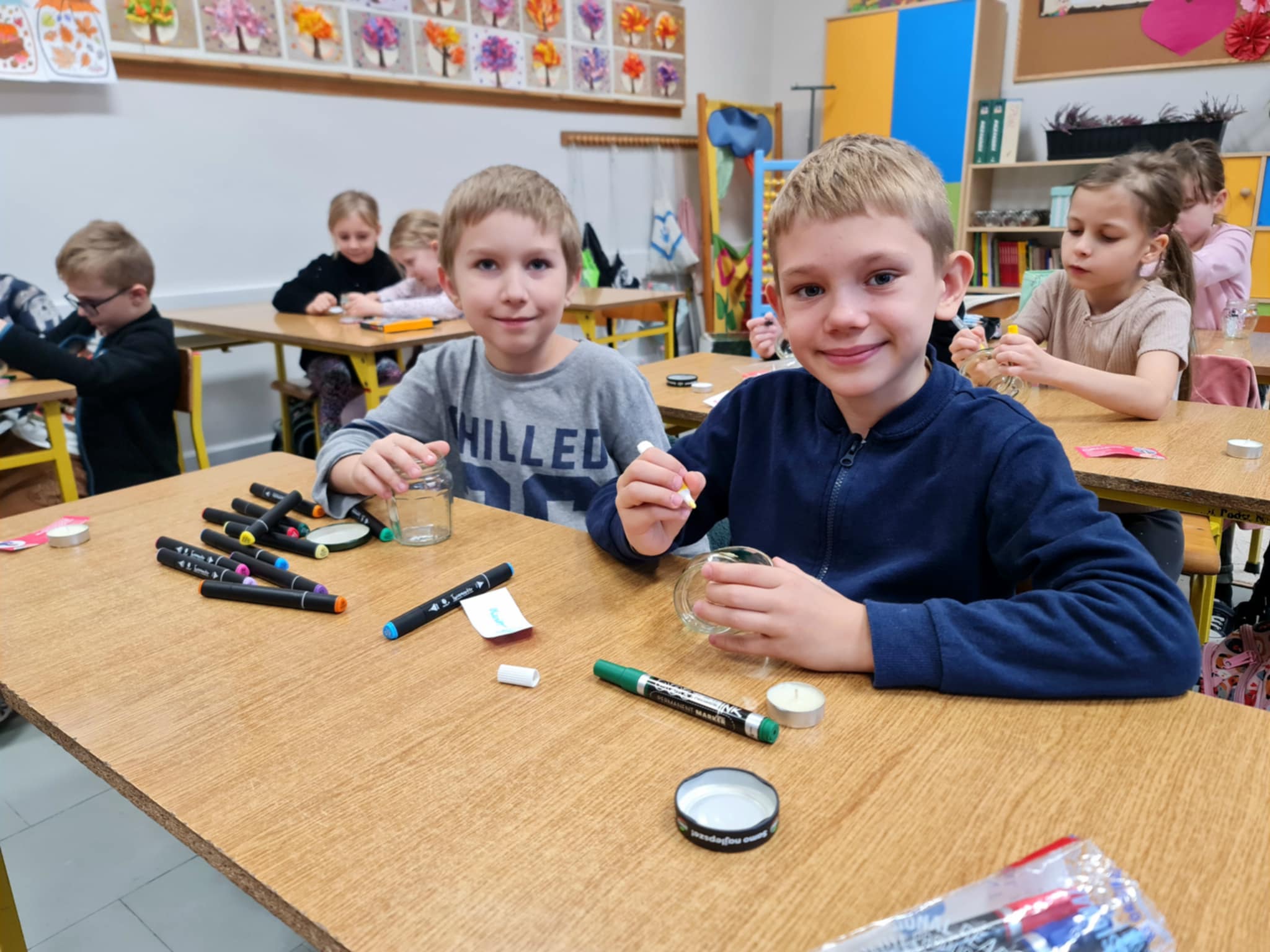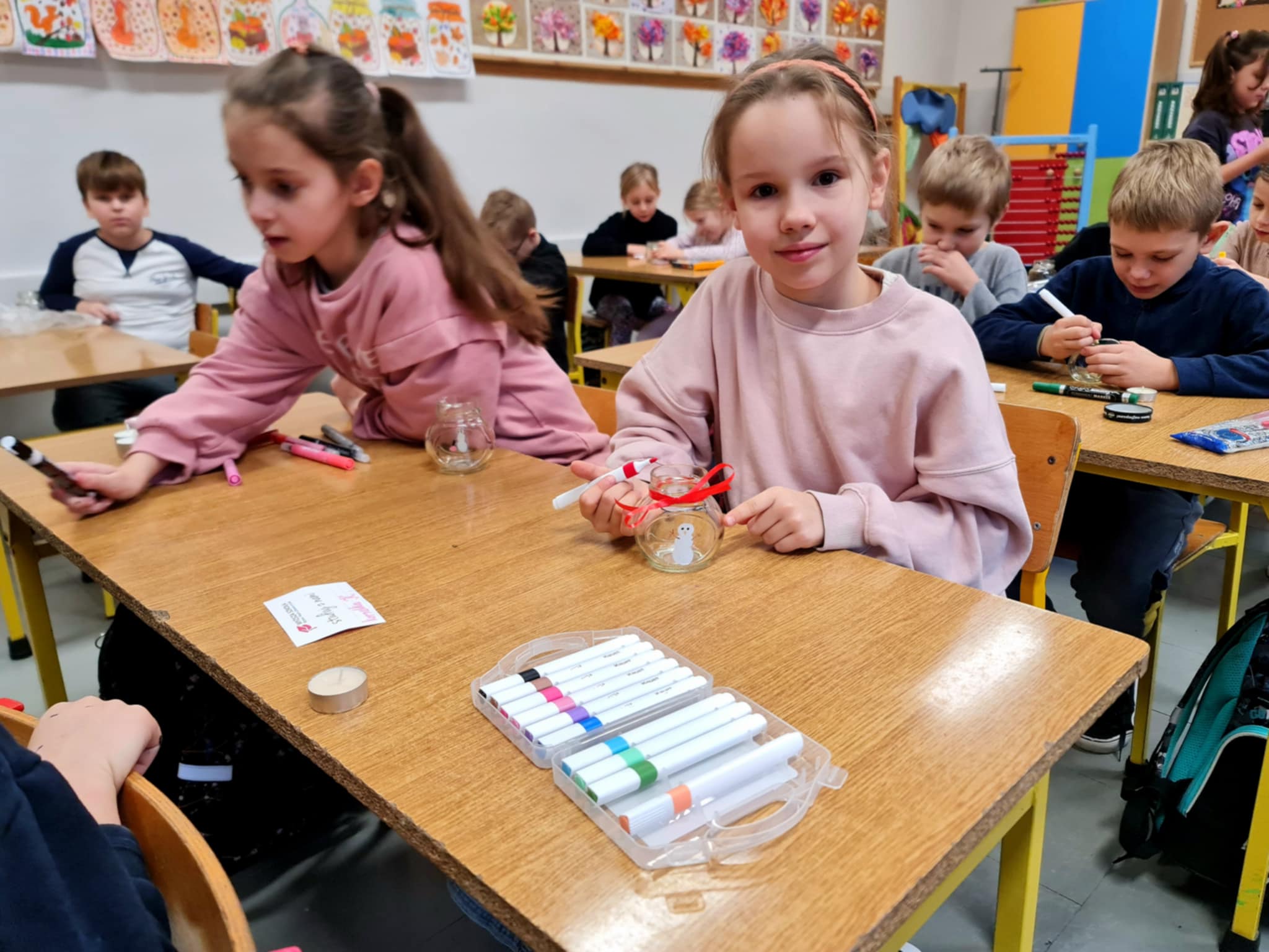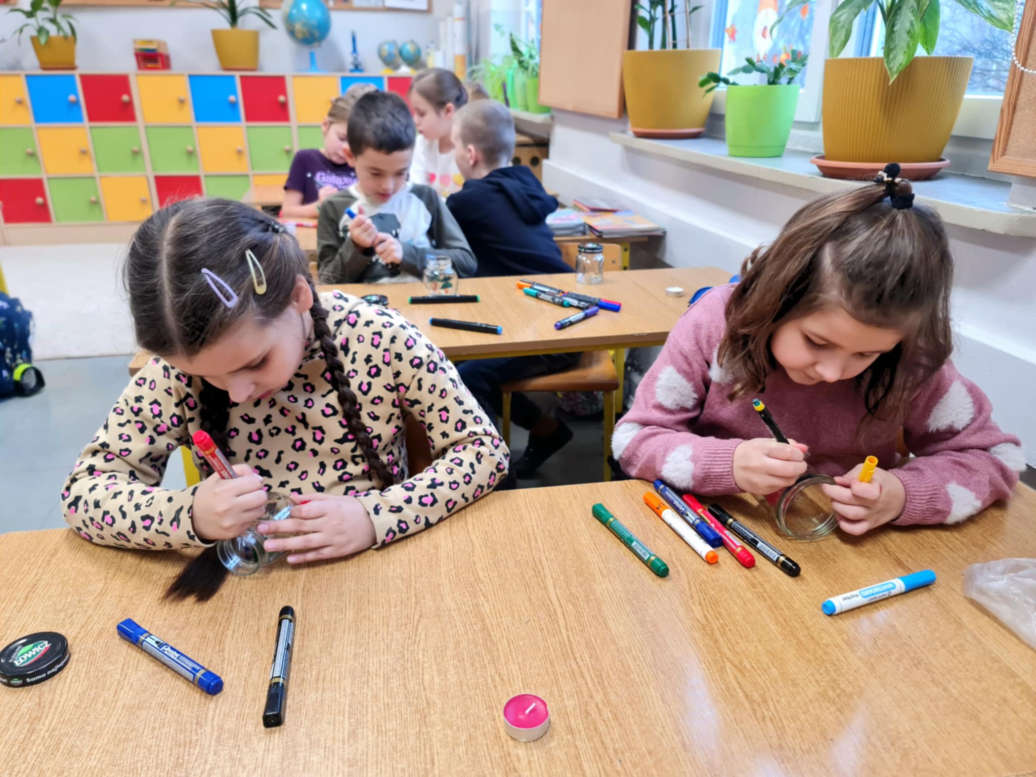 Uczniowie klasy 2b i 2c wykonali autorskie, świąteczne świeczniki.