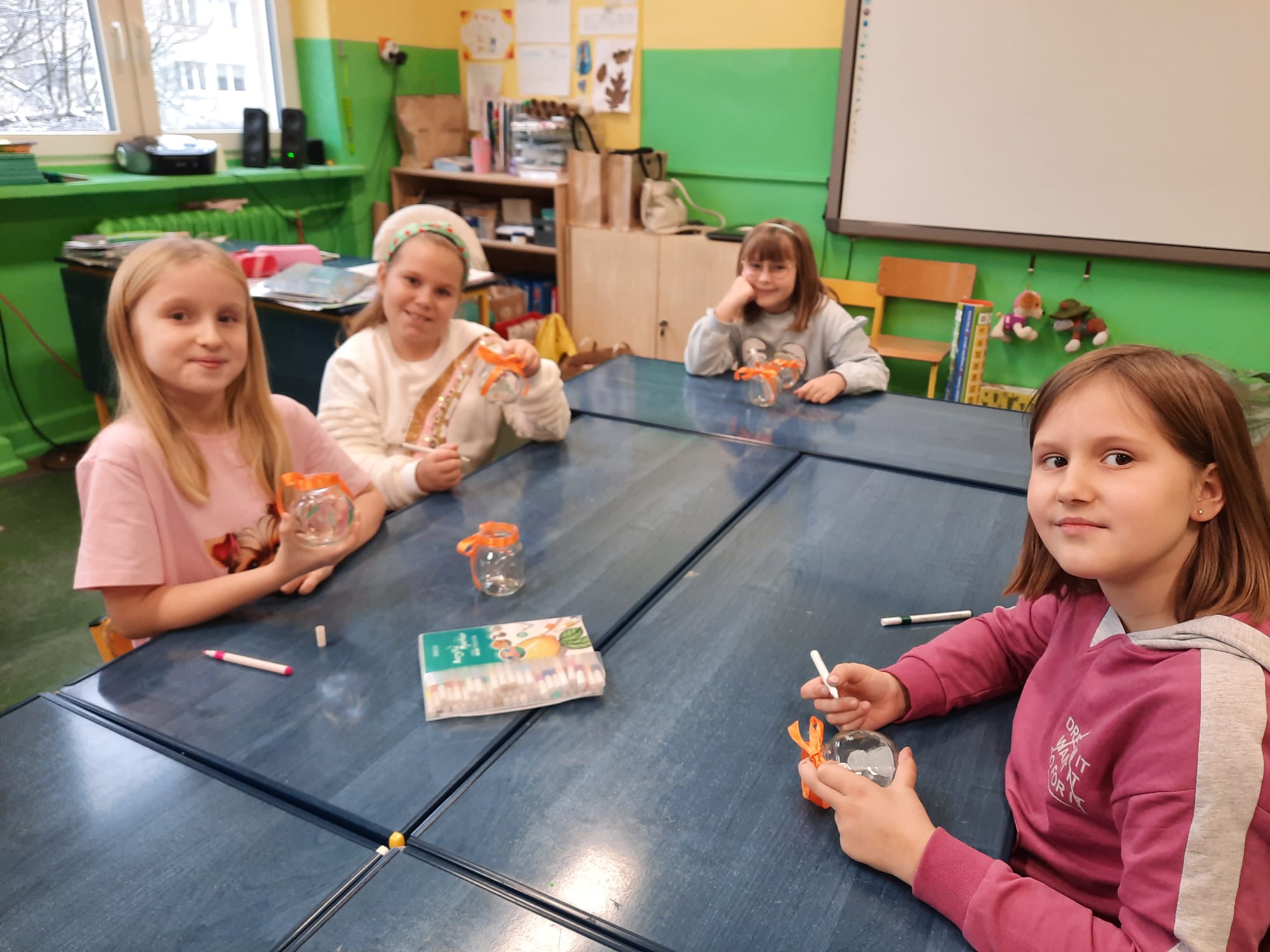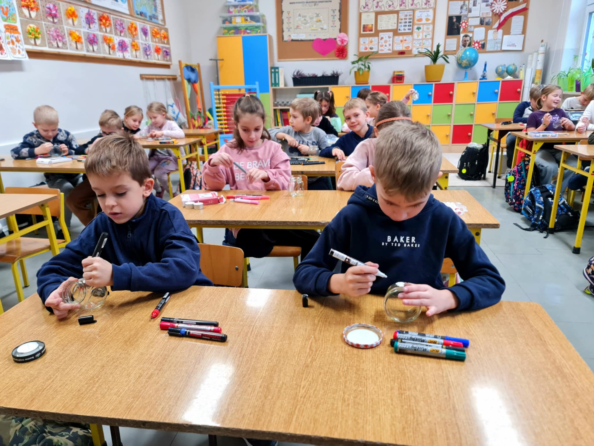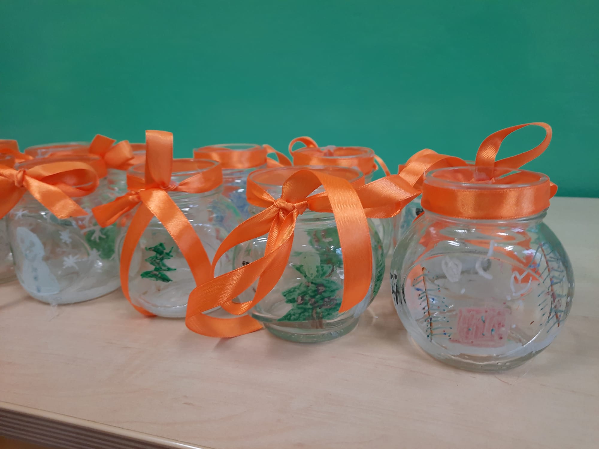 Uczniowie klasy 2b i 2c wykonali autorskie, świąteczne świeczniki.