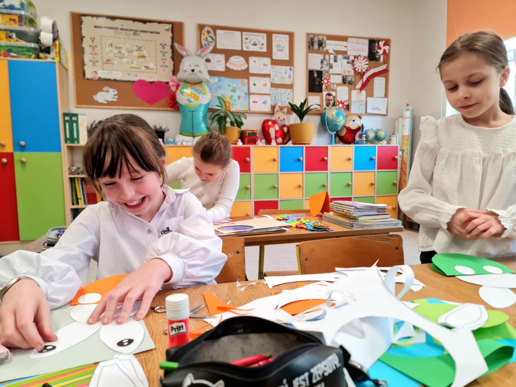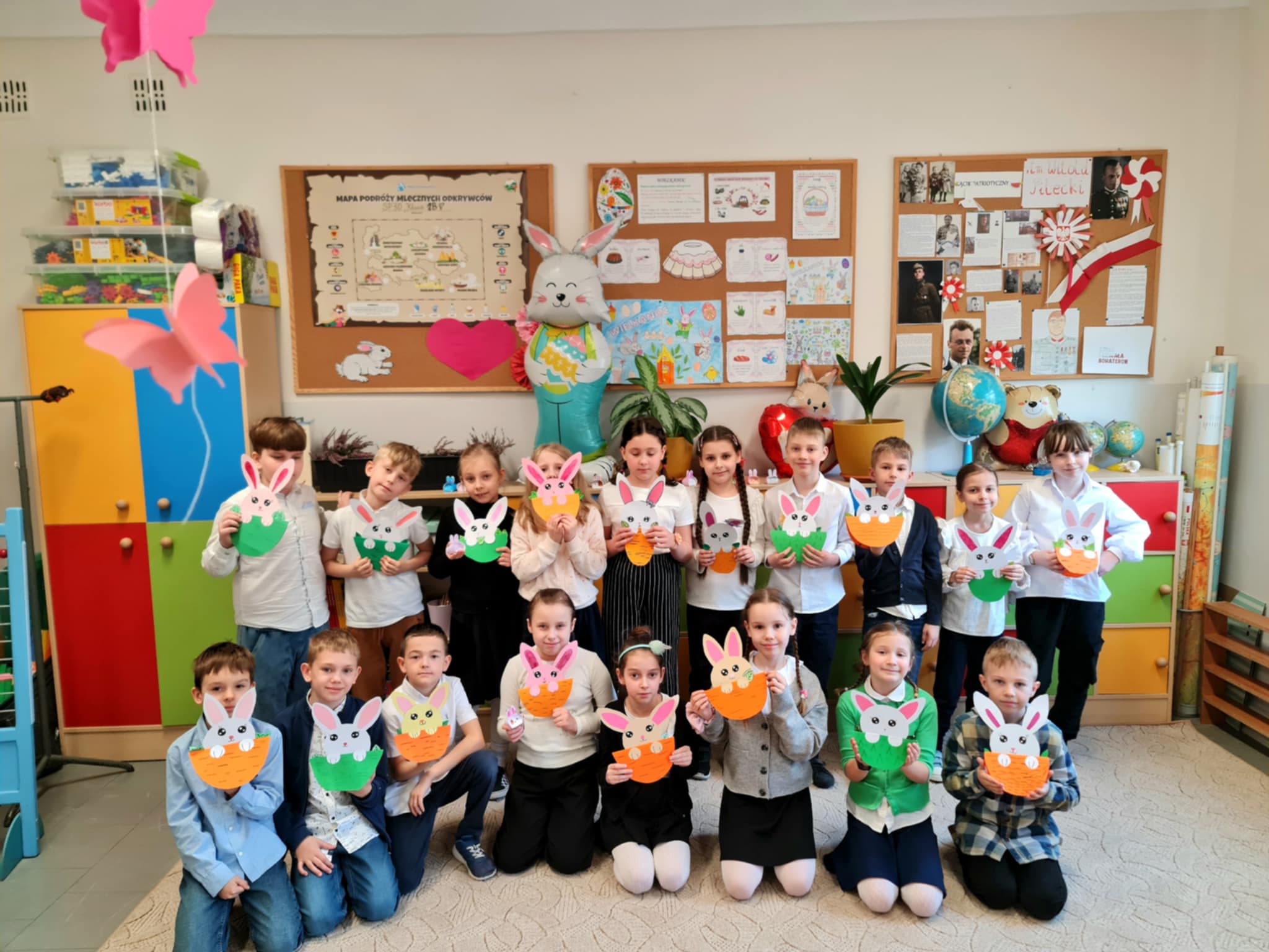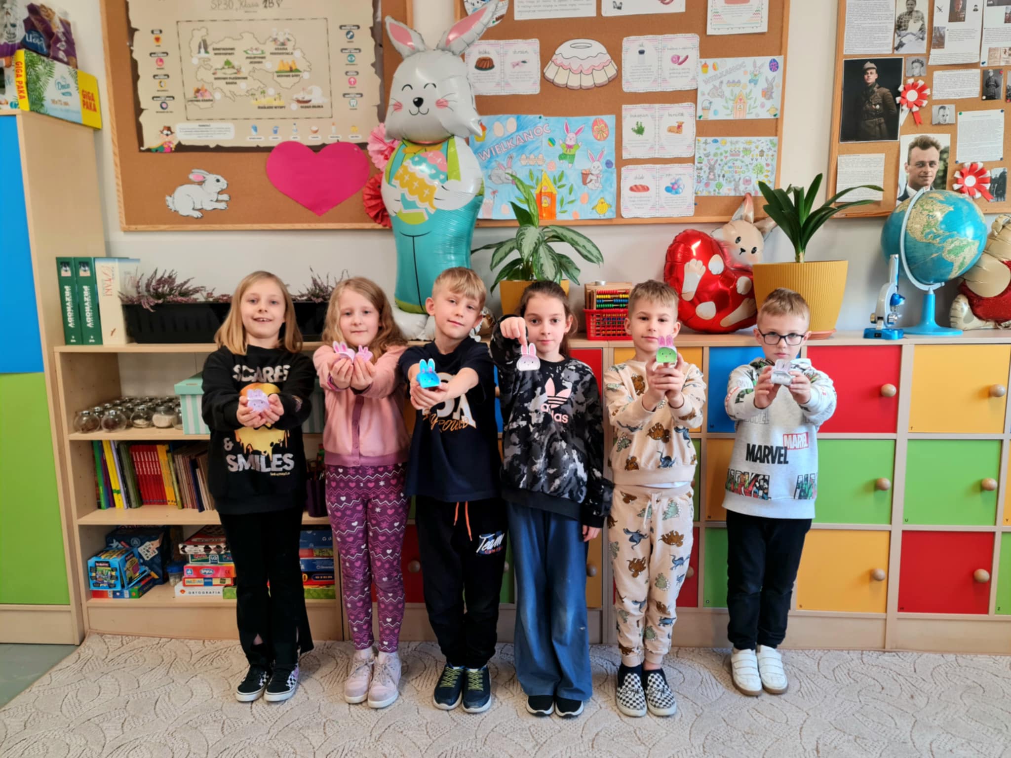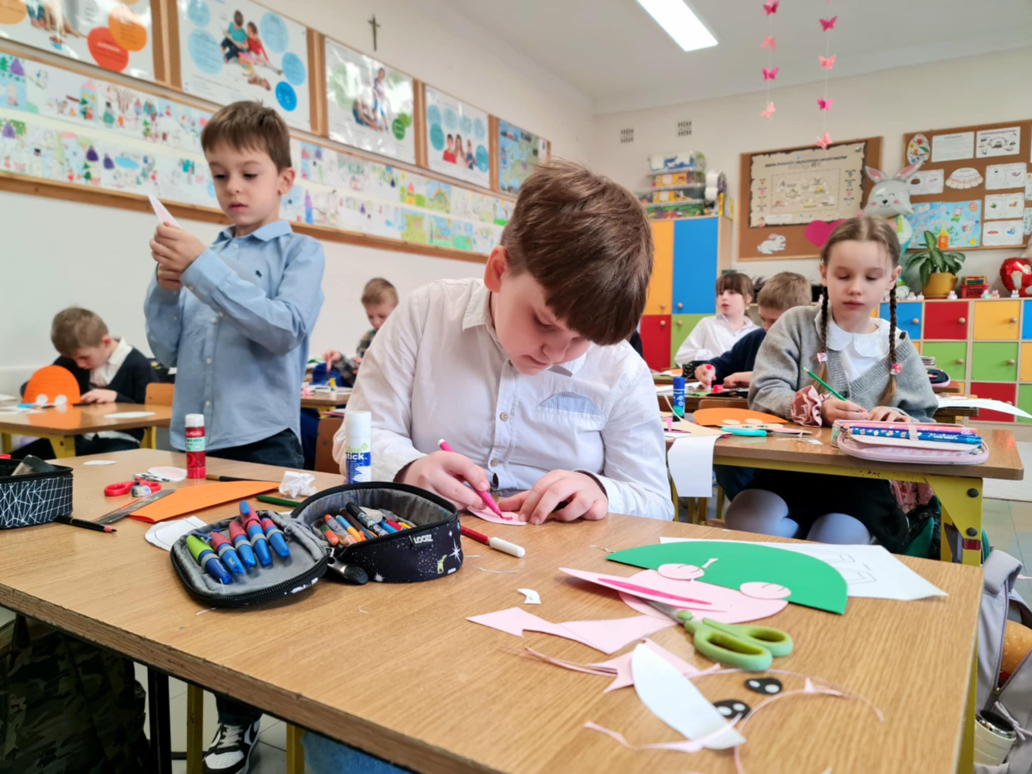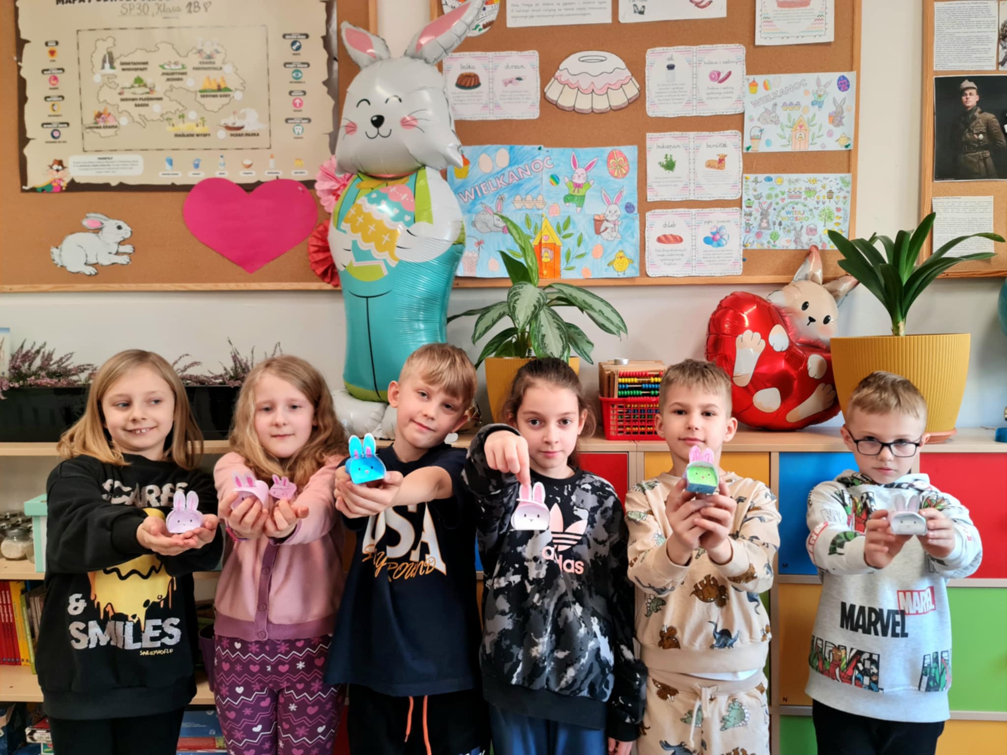 W klasie 2b rozpoczęły się przygotowania do Świąt Wielkanocnych. Podczas zajęć techniczno-plastycznych uczniowie wykonywali różnorodne dekoracje świąteczne. Powstały papierowe króliczki, trójwymiarowe koszyczki wielkanocne oraz urocze zajączki z ukrytymi w środku życzeniami.