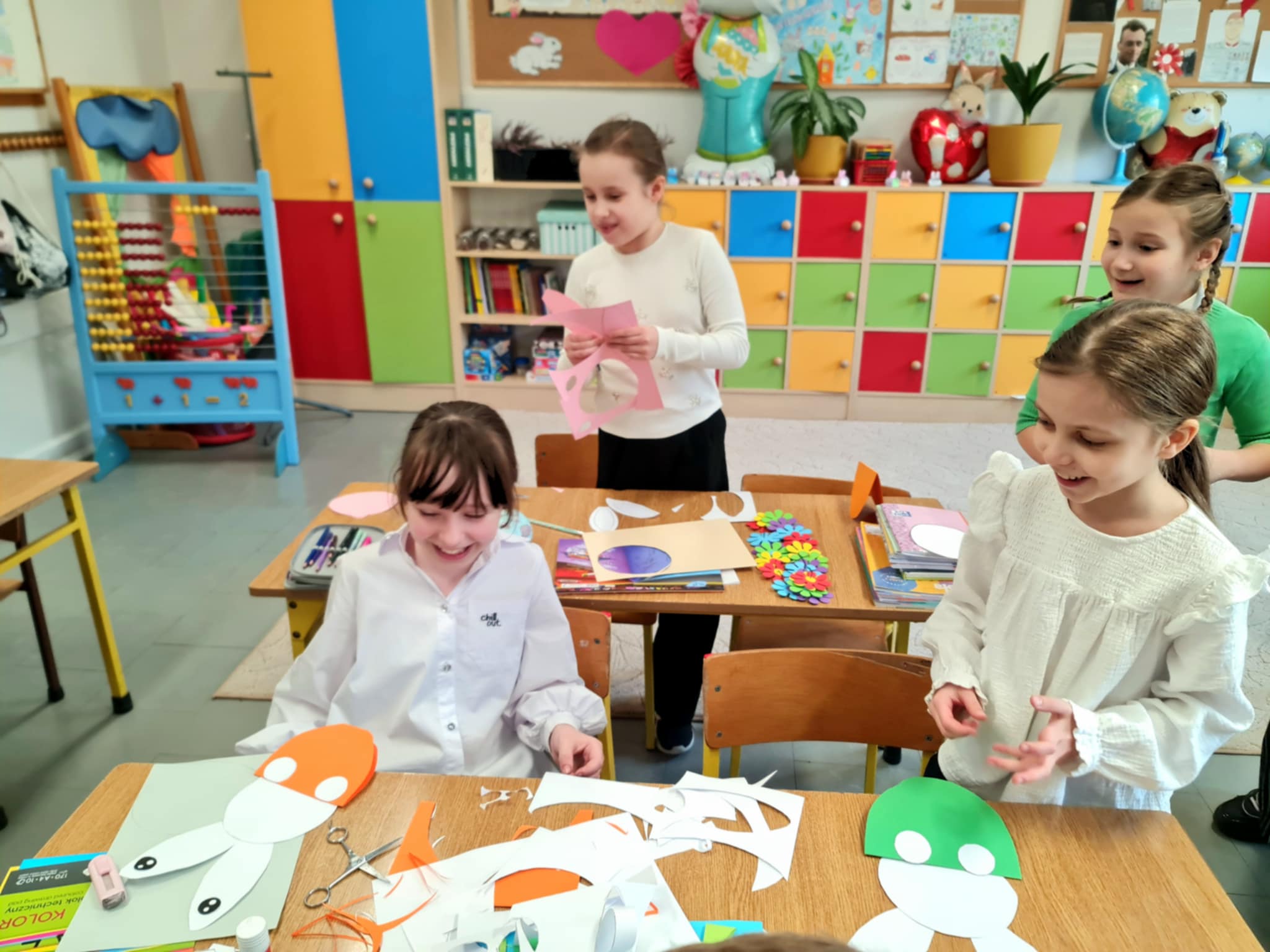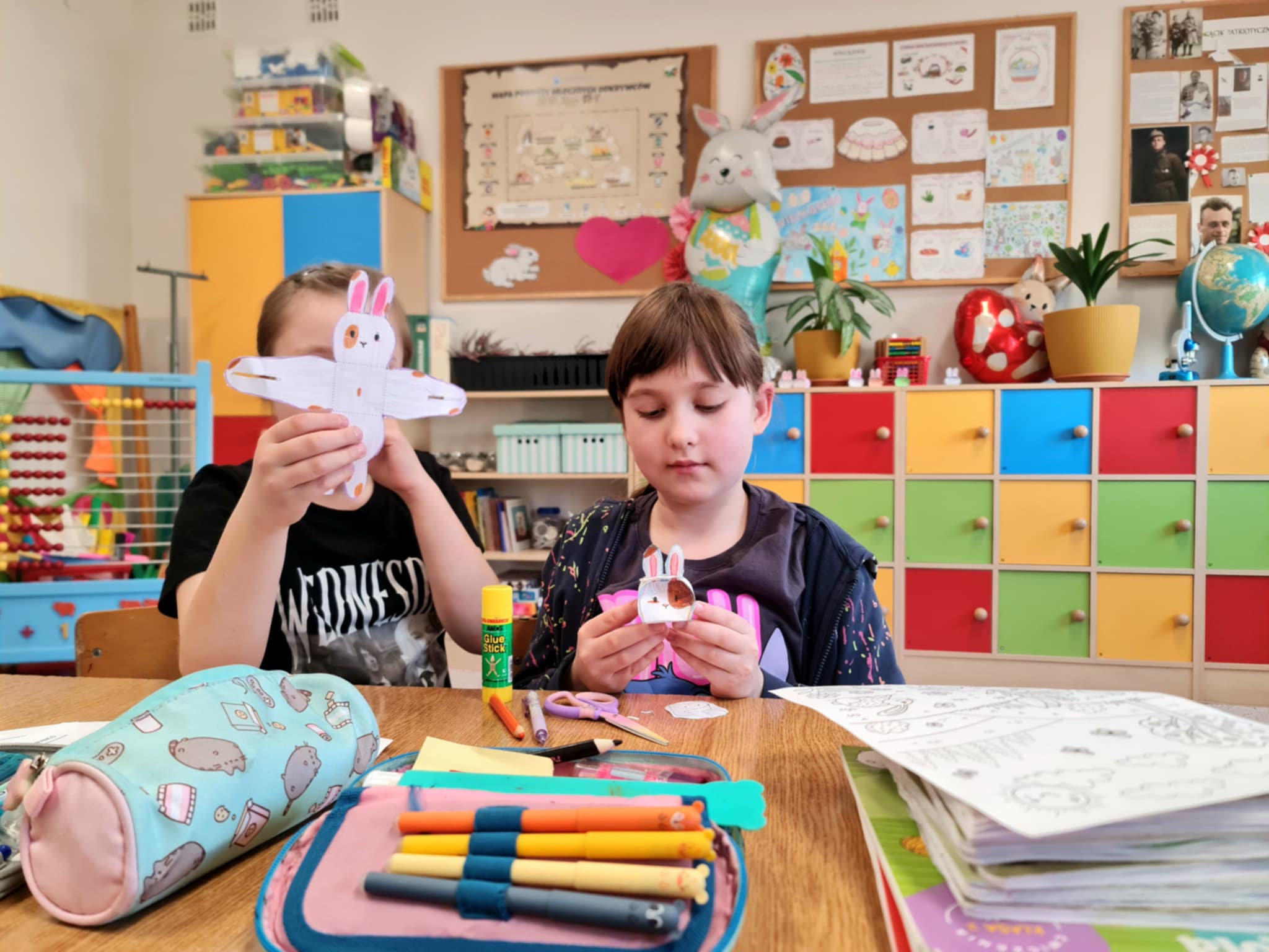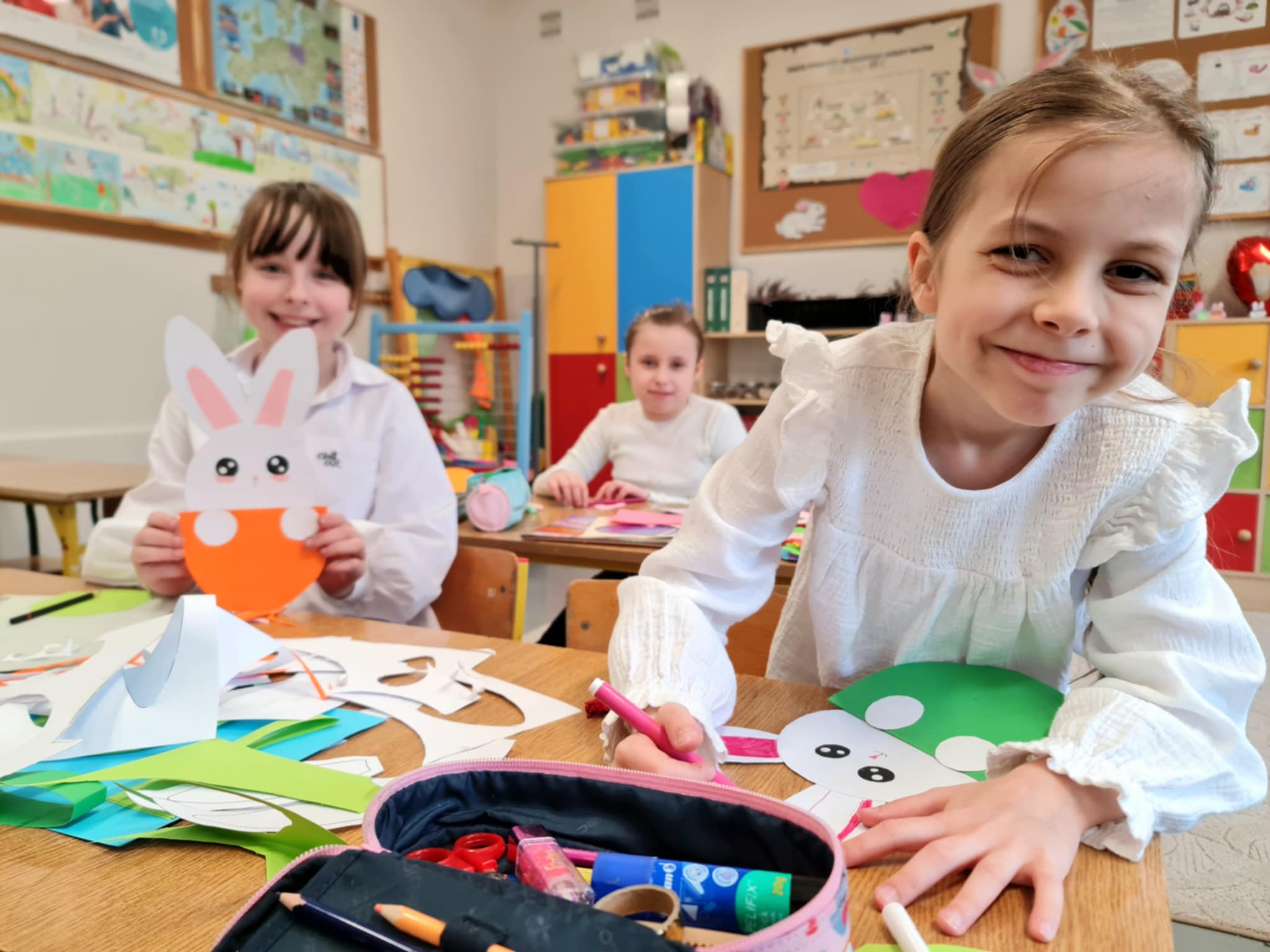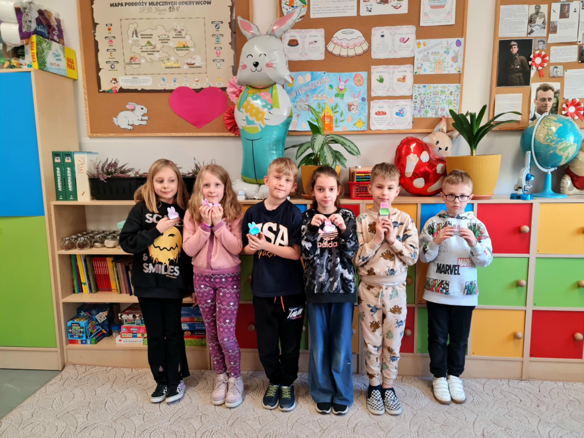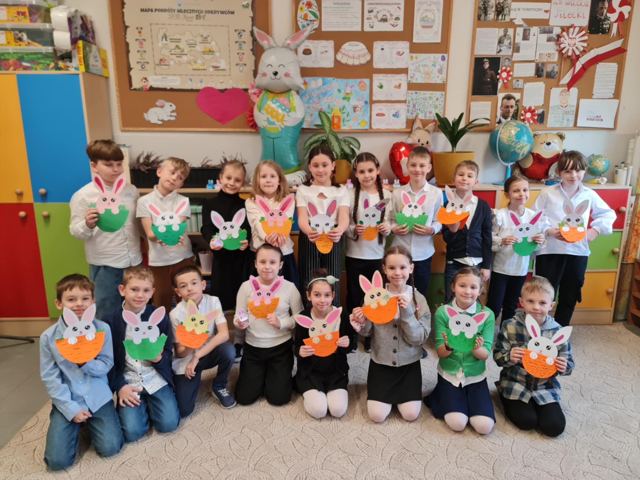 W klasie 2b rozpoczęły się przygotowania do Świąt Wielkanocnych. Podczas zajęć techniczno-plastycznych uczniowie wykonywali różnorodne dekoracje świąteczne. Powstały papierowe króliczki, trójwymiarowe koszyczki wielkanocne oraz urocze zajączki z ukrytymi w środku życzeniami.