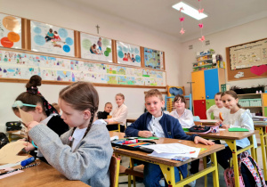 Dzieci z dużym zaangażowaniem i starannością pracowały nad swoimi pracami, wykazując się pomysłowością oraz dbałością o szczegóły.