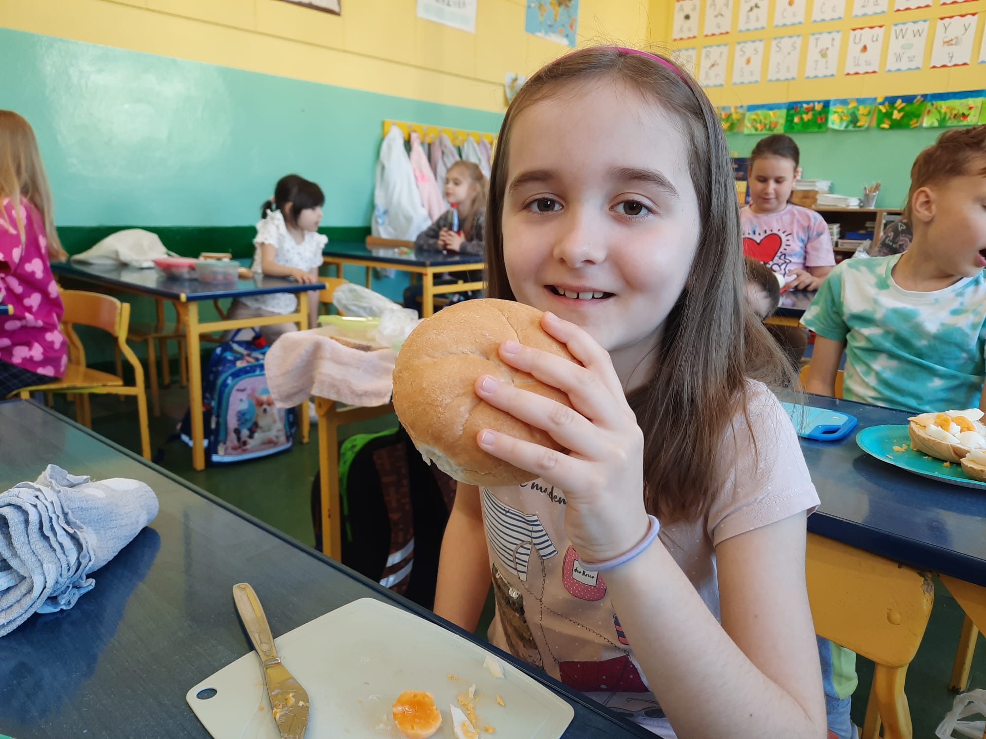 30 kwietnia uczniowie klasy 1c samodzielnie wykonali zdrowe, wiosenne kanapki z obowiązkowym jajkiem. Dzięki temu wiedzą, ile wysiłku należy włożyć w zrobienie śniadaniowej kanapki. Dodatkowo dowiedzieli się jak ważne jest dla ich zdrowia i ogólnej kondycji fizyczno-psychicznej spożywanie zbilansowanych posiłków każdego dnia.